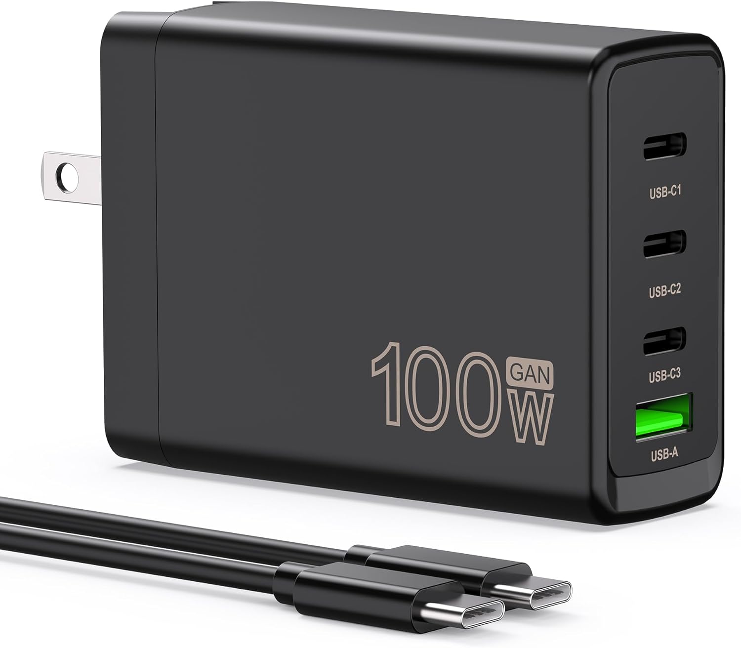 100W USB C Charger Block,4-Port GaN Fast Charger for MacBook Pro, MacBook Air, Google Pixelbook, ThinkPad, Dell XPS, iPad Pro, Galaxy iPhone All USB C Devices 6ft