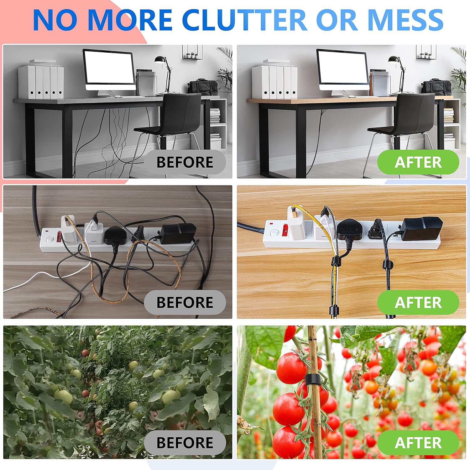 【VERSATILE CABLE MANAGEMENT】Organize cords and cables with ease using these reusable cable management kit. Perfect for home, office, or electronics setups, keeping your space clutter-free and organized.