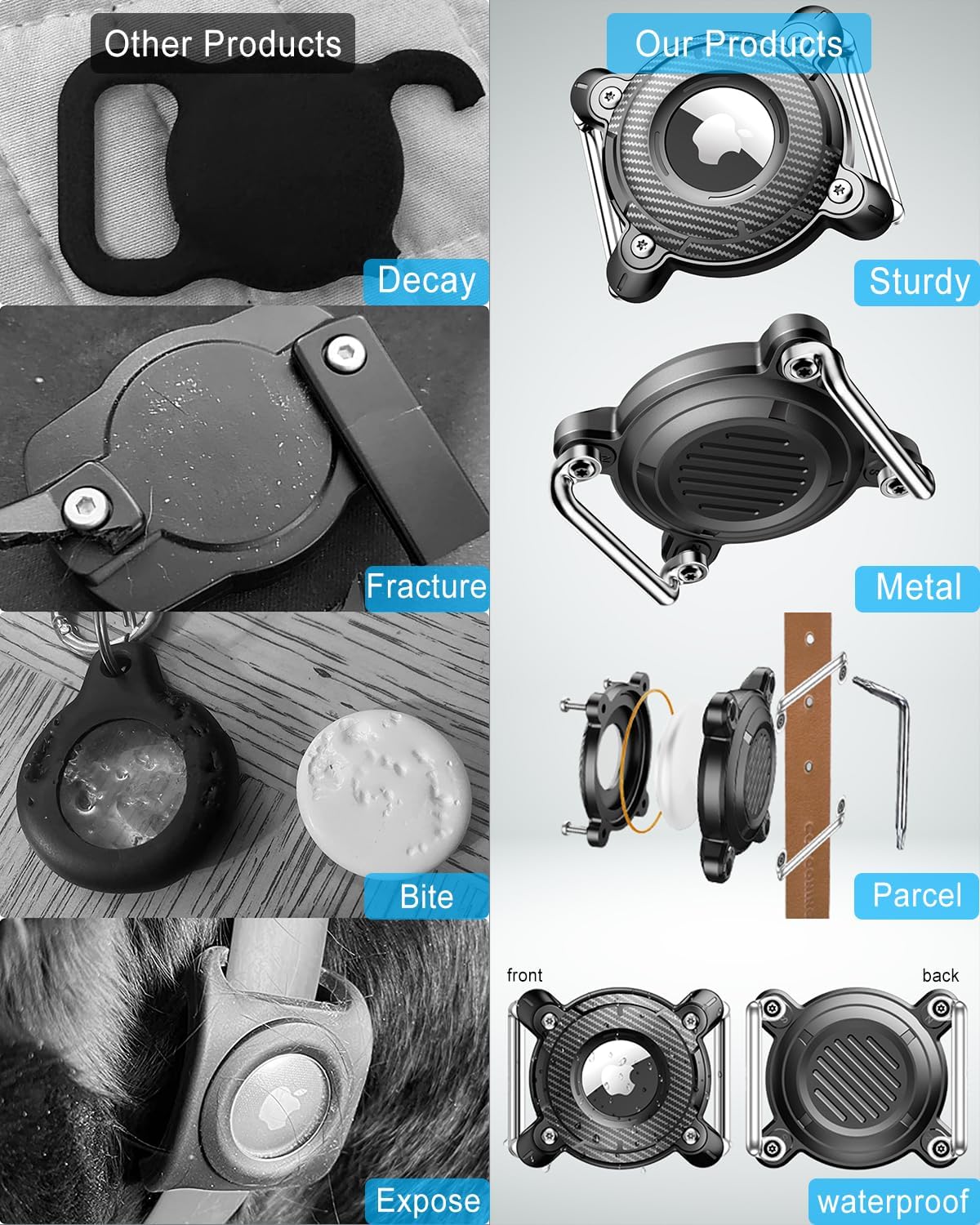This airtag pet collar holder is more suitable for airtag dog collar. Compared to other products, it is more fitting, waterproof, sturdy, does not slide, Airtag collar dog holder waterproof case not afraid of holder ear breakage, Air tag dog coller holder not afraid of dog bites, and fully protects the apple label.