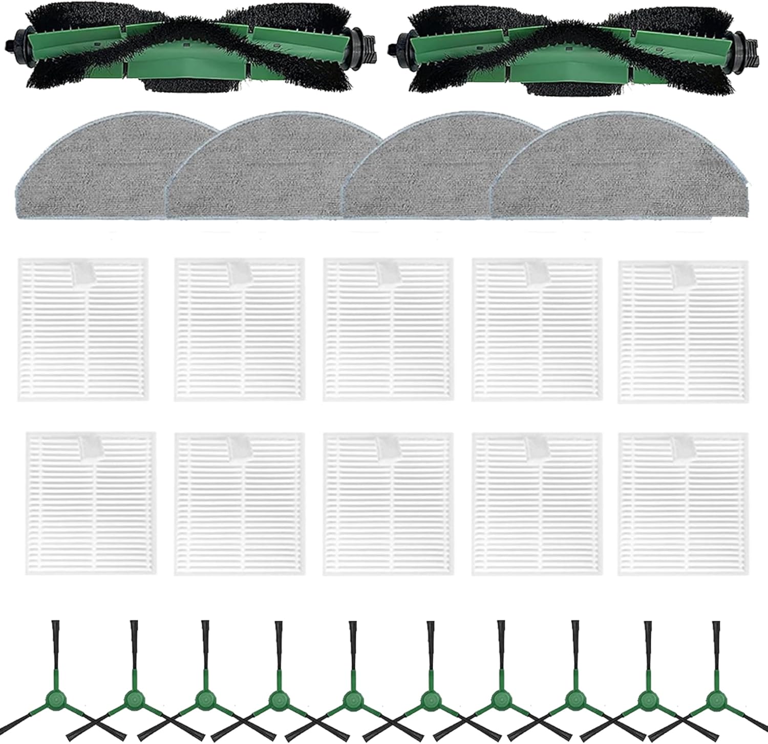 2 Roller Brush&10 Side Brushes&10 Hepa Filters & 4 Mopping Pads Replacement Parts Accessories Compatible with iRobot Roomba Essential Series Q0120 Y0140 Y0110 Q0110 Robot Vacuum Cleaner