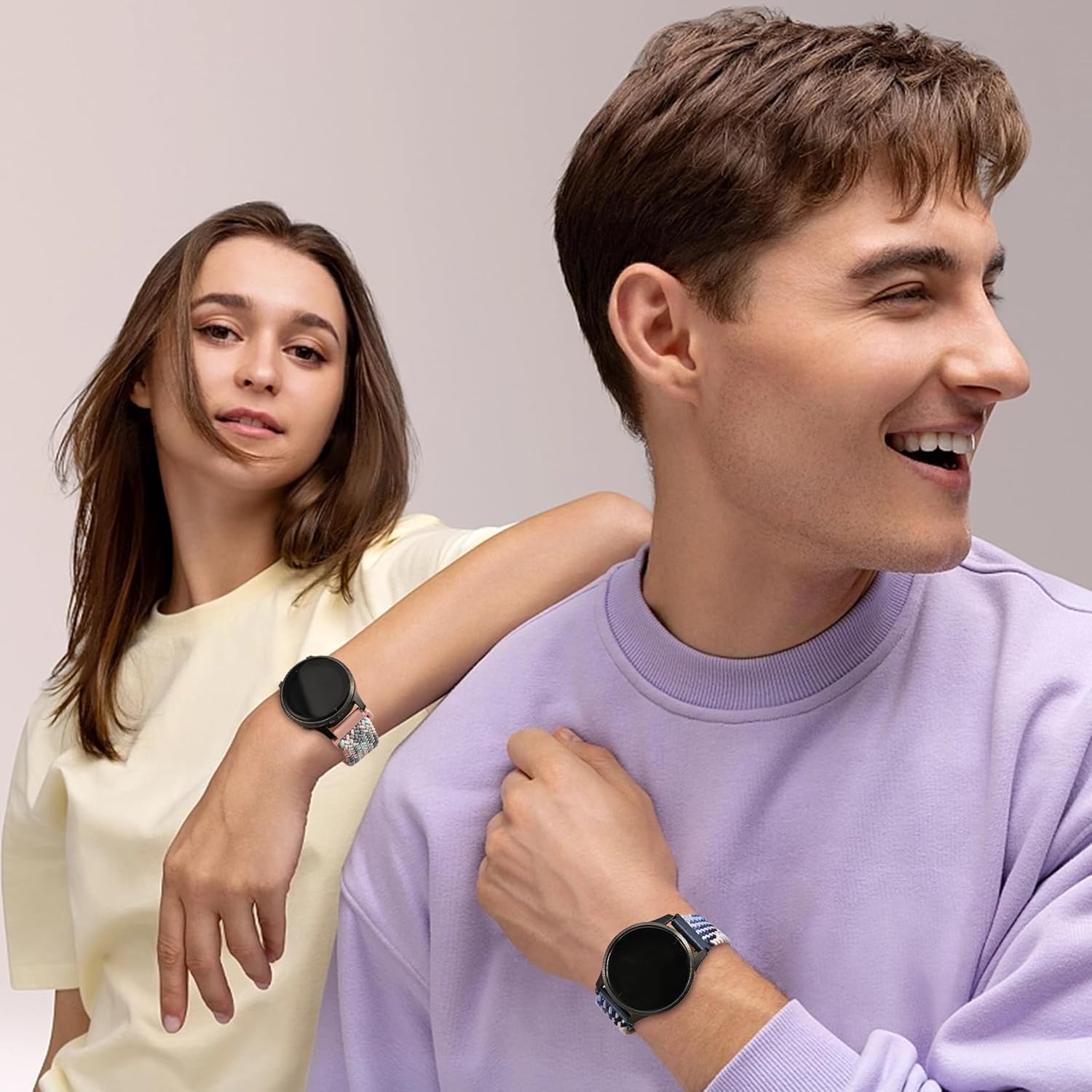 Folavii 22mm Braided Elastic Nylon Watch Band for Women Men
