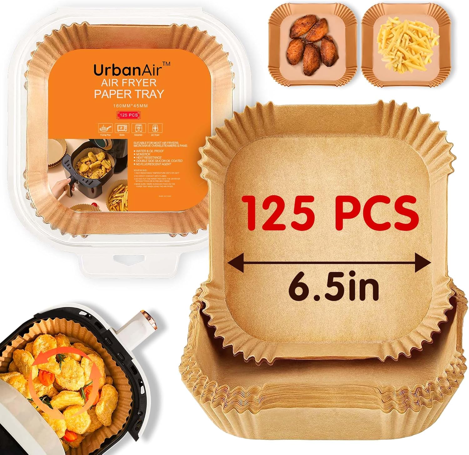 6.5-Inch Square Air Fryer Paper Liners 125pcs for Easy Cleanup – Non-Stick, Heat-Resistant, and Perfect Fit for Hassle-Free Cooking | Bleach-Free Parchment| (6.5 in/16cm 125pcs)