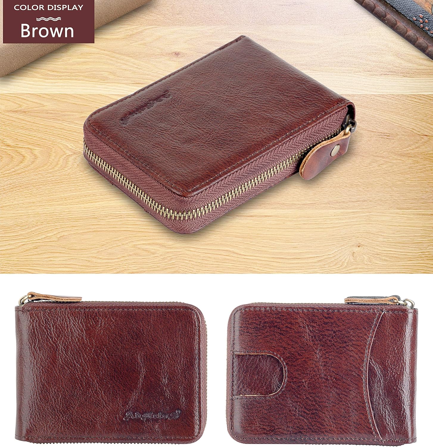 Admetus Men’s Zipper Wallet Leather Bifold Wallets Slim RFID Blocking Zip Around Credit Card Holder Compact Small Wallet