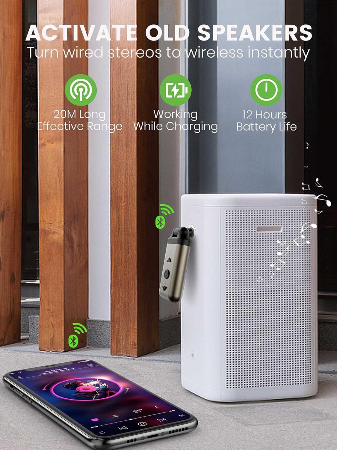 [FREE FROM WIRES RIGHT NOW] Air88 Bluetooth aux adapter that enables car or traditional wired speakers to have Bluetooth functionality instantly. It can be connected with your Bluetooth enable mobile phones tablet notebooks to play wireless music to your car or other stereo.