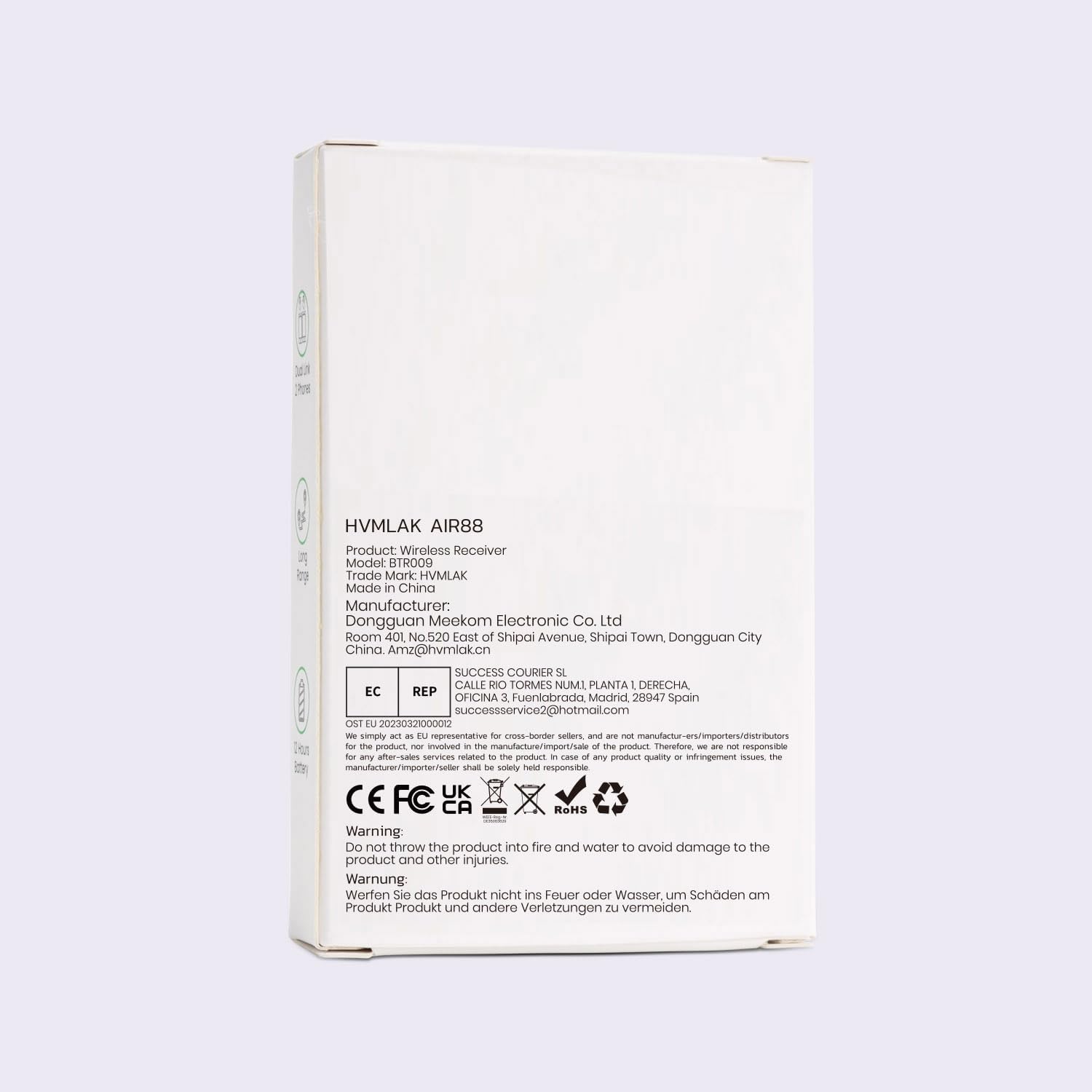 Note: AIR88 is not a Bluetooth transmitter so it can not work for TV airplane iPod etc..