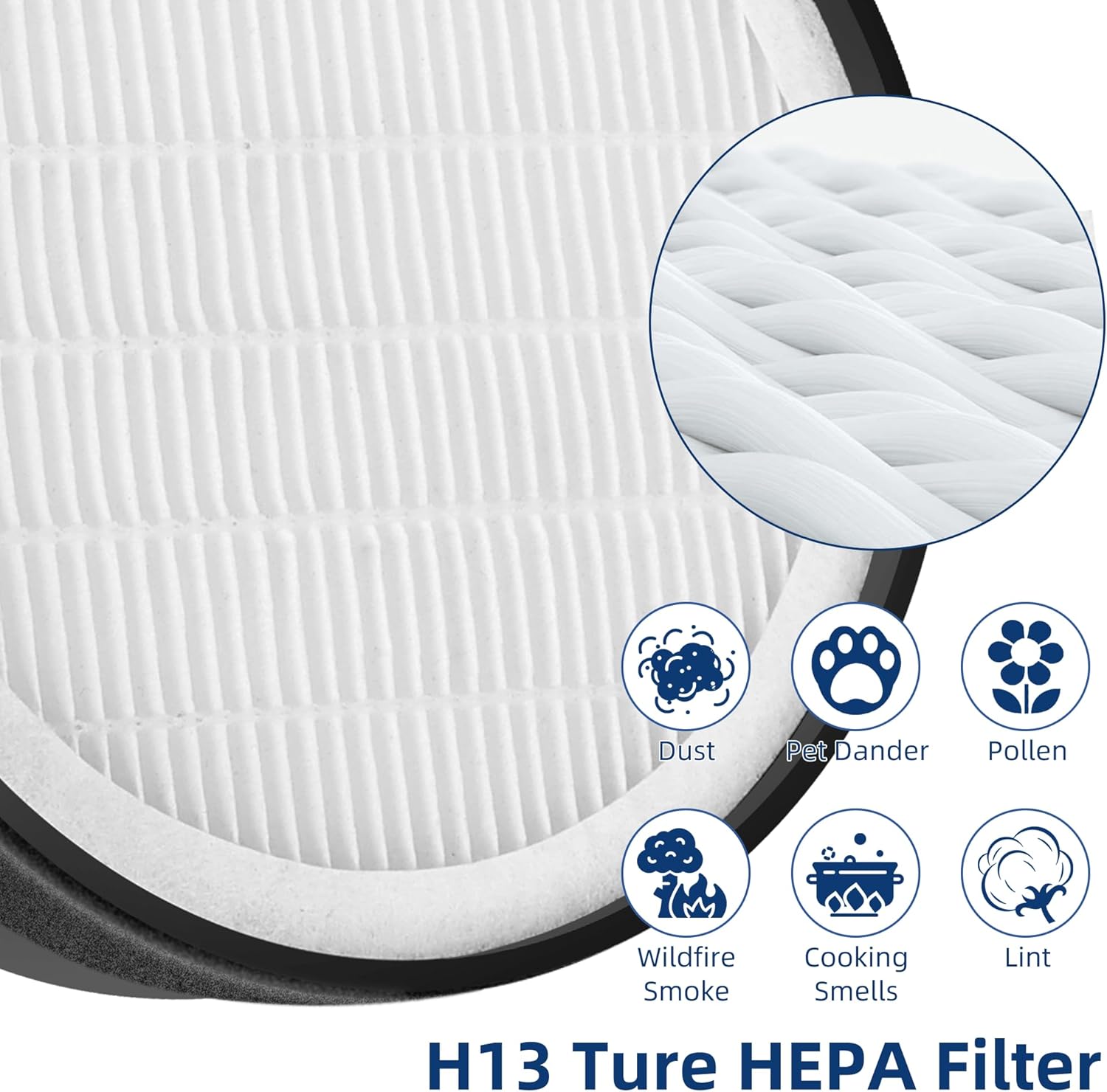 🍀[Powerful & Efficient Filtration] APPLIANCEMATES H13 true HEPA replacement filter (Part # LV-H132-RF) adopts 3-in-1 filtration system – Nylon Pre-Filter + H13 Grade True HEPA Filter + High-Efficiency Activated Carbon Filter to achieve 99.97% filtration efficiency