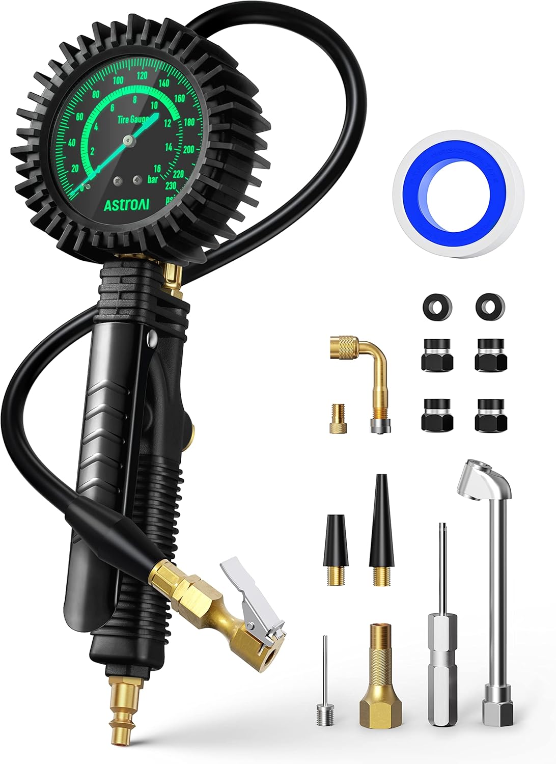 AstroAI 2025 Upgraded Tire Inflator with Pressure Gauge 230PSI – ANSI B40.1 Accurate, Large 2.6″ Easy Read Glow Dial, Extra Long Rubber Hose with 360° Air Chuck, Compatible with Cars/Trucks/RV