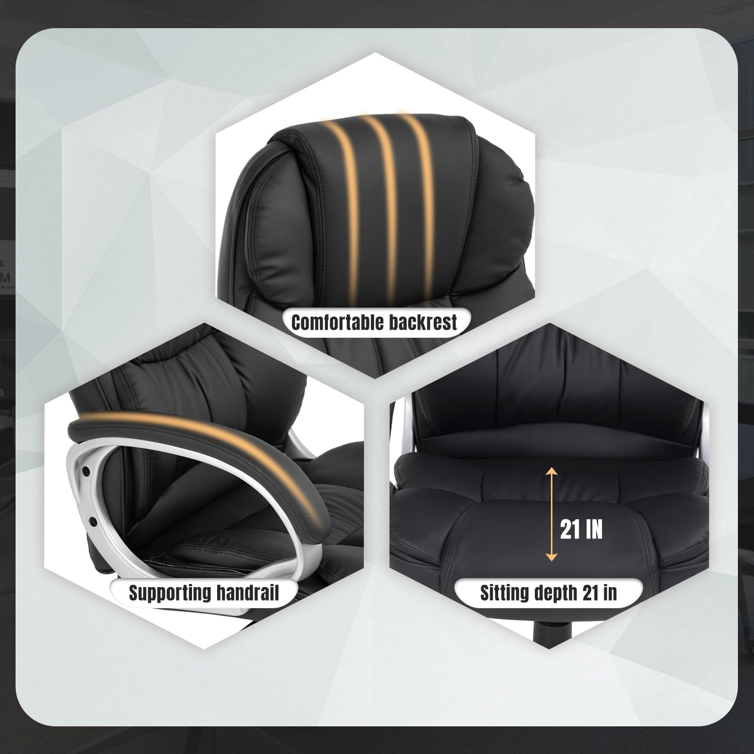 SLEEK, MODERN DESIGN – Work in style at the office or at home with this ergonomically-designed, high-back office chair. Lined with soft PU leather that is both oil and water resistant, our chair is both eye-catching and long-lasting.