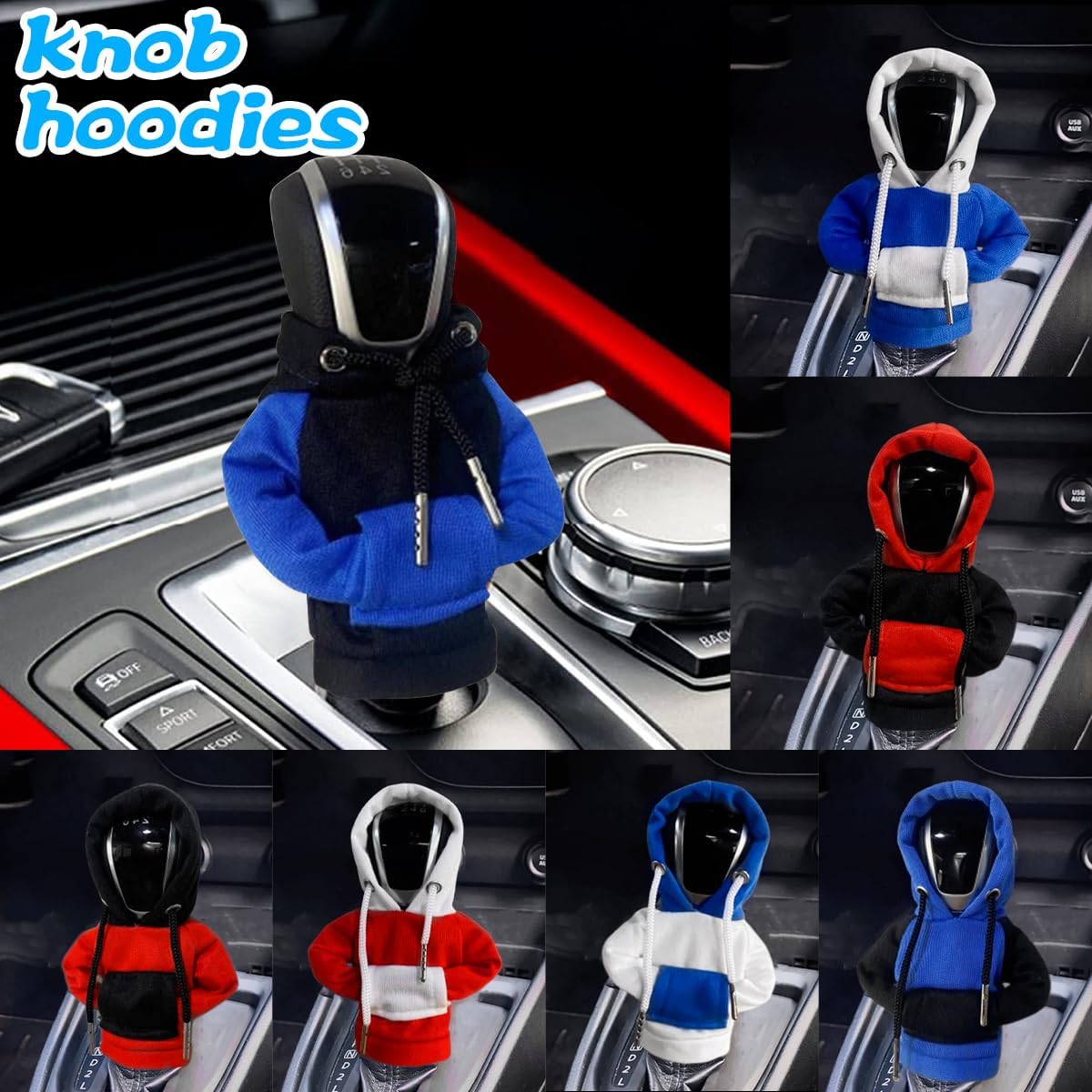 BESULEN Car Shift Gear Cover, Fashionable Sweater Hoodie Auto Shift Knob Cover, Soft & Comfortable, Universal Fit Automotive Gear Shift Knob Protector Cover