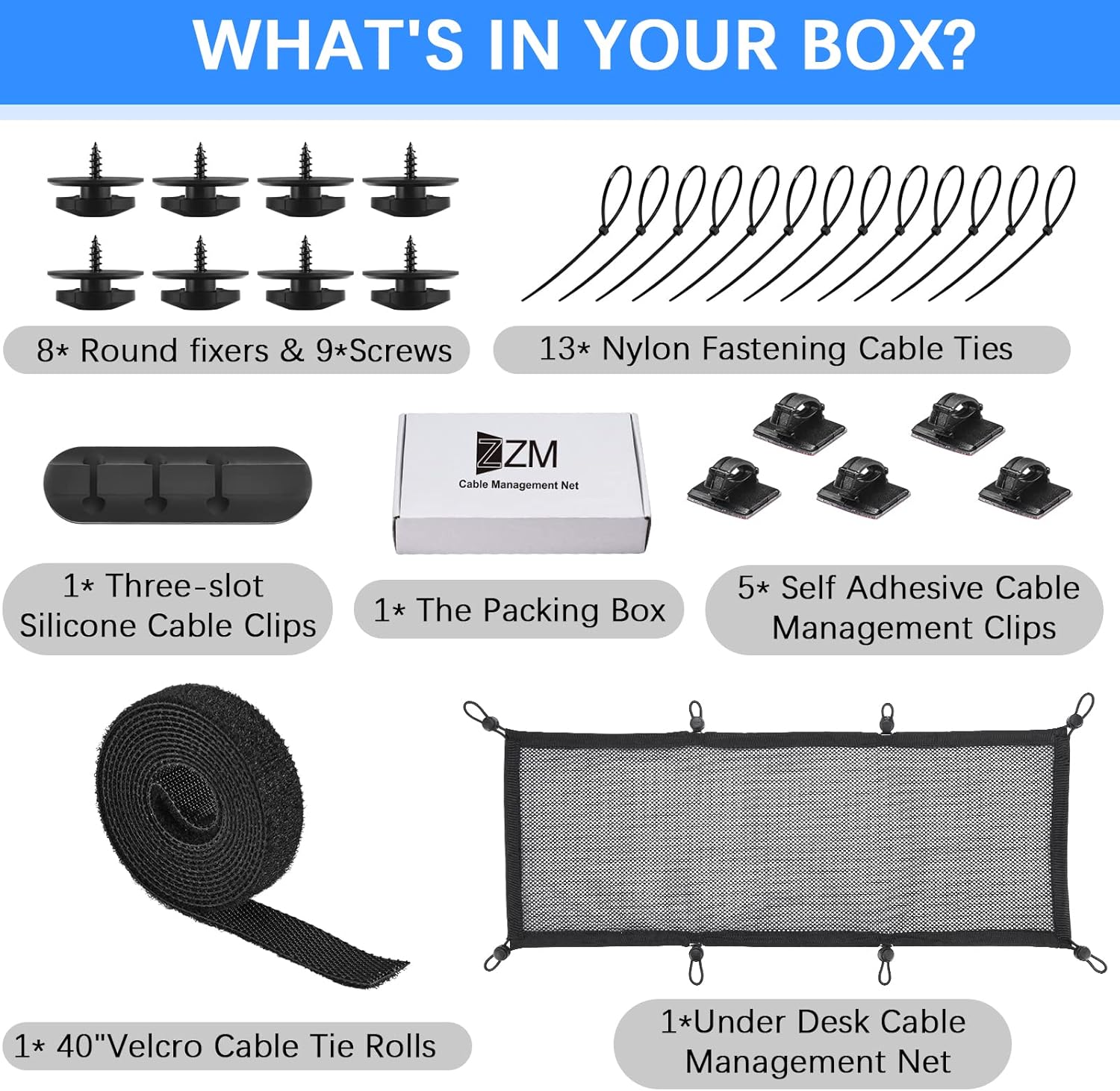 【WORRY-FREE VOUCHSAFING】ZZM Under Desk Cable Management Net safe for tabletops from 15mm and thicker.Please feel free to contact us if you have any dissatisfaction or questions about product installation and parts.