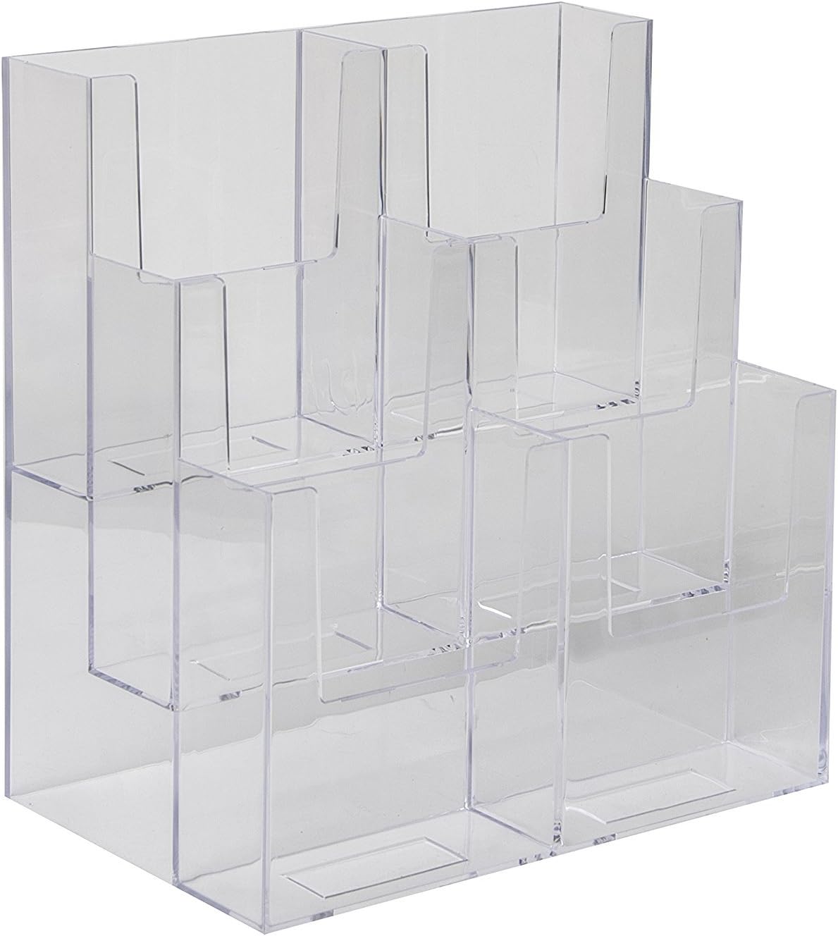 Dazzling Displays Acrylic Stand 3 Tier, 6 Pocket Fits 4 by 9 Material, Trifold Brochure Holder, Countertop Clear Display, Organizer Tray, Rack for Pamphlet, Letters, Folders, Document, Sign, Cards (1)