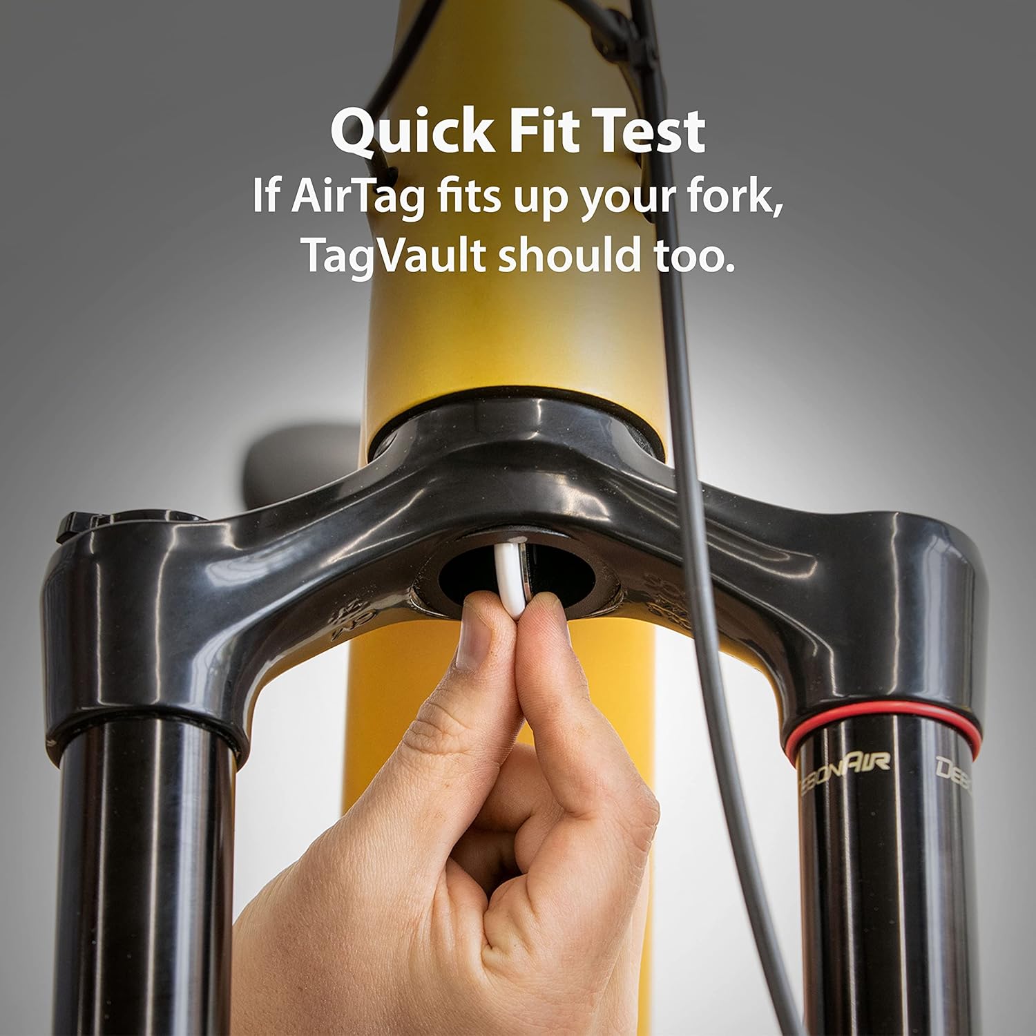 COMPATIBILITY TEST: If AirTag fits up your fork, TagVault should too. Fits fork inside diameters 32-34.4mm (1.25-1.35″).