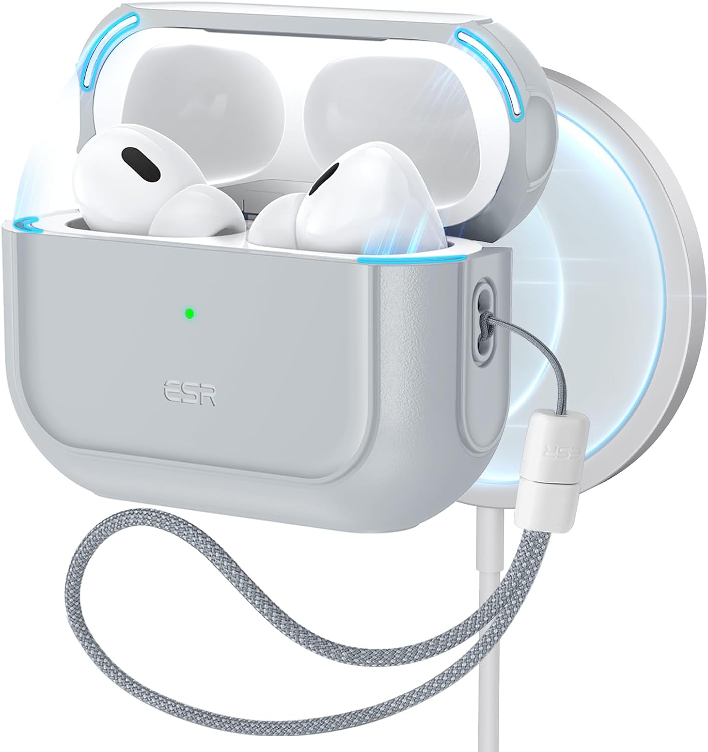 ESR for AirPods Pro 2 Case (HaloLock), Compatible with Airpods Pro Case 2nd / 1st Generation (2023/2022/2019), Compatible with MagSafe, Full Drop Protection Cover with Lanyard, Gray