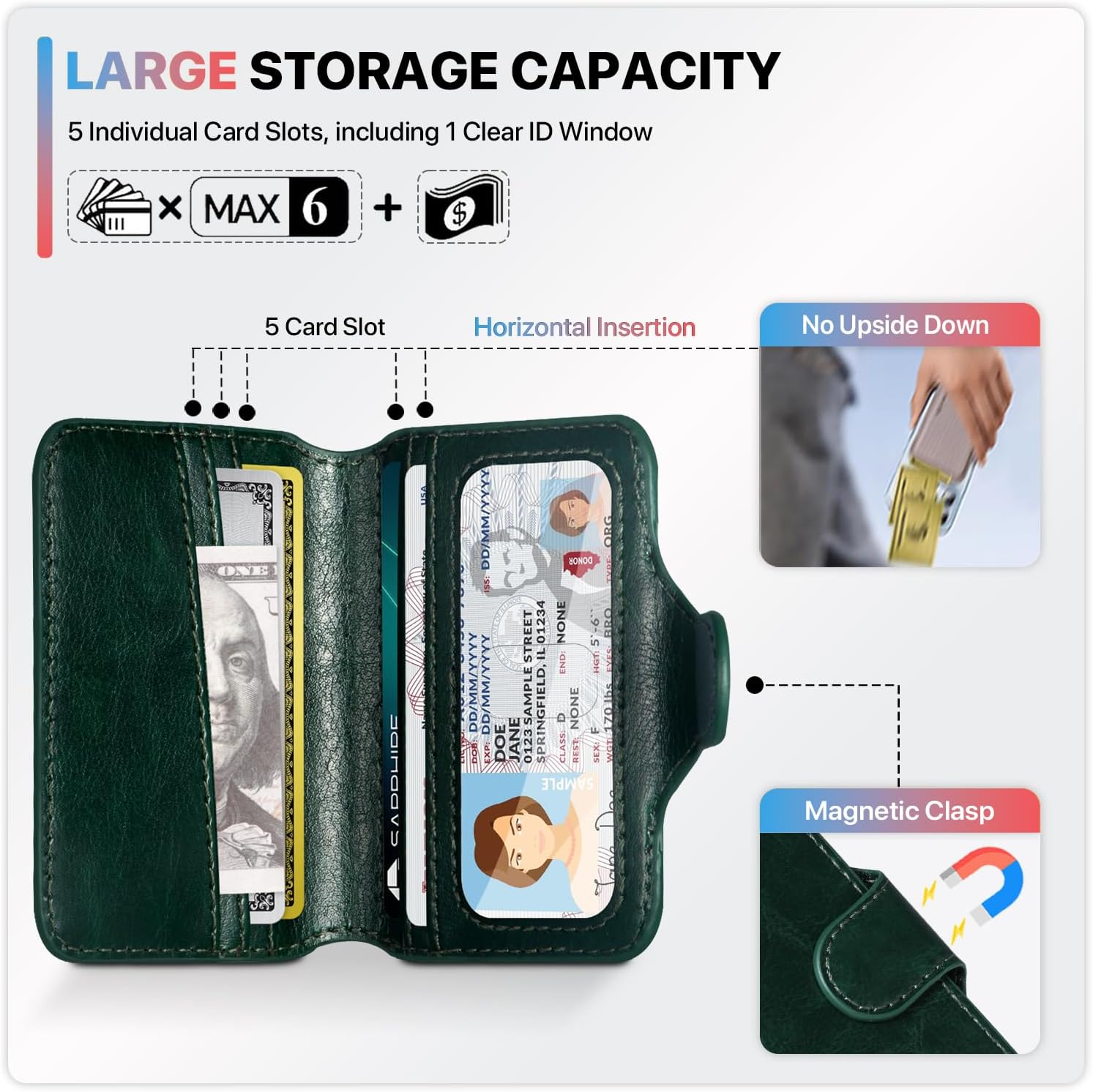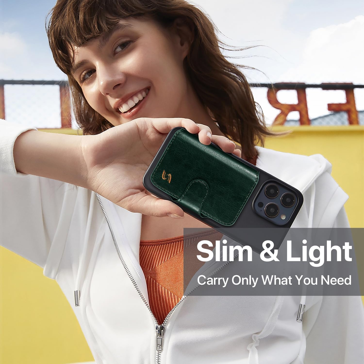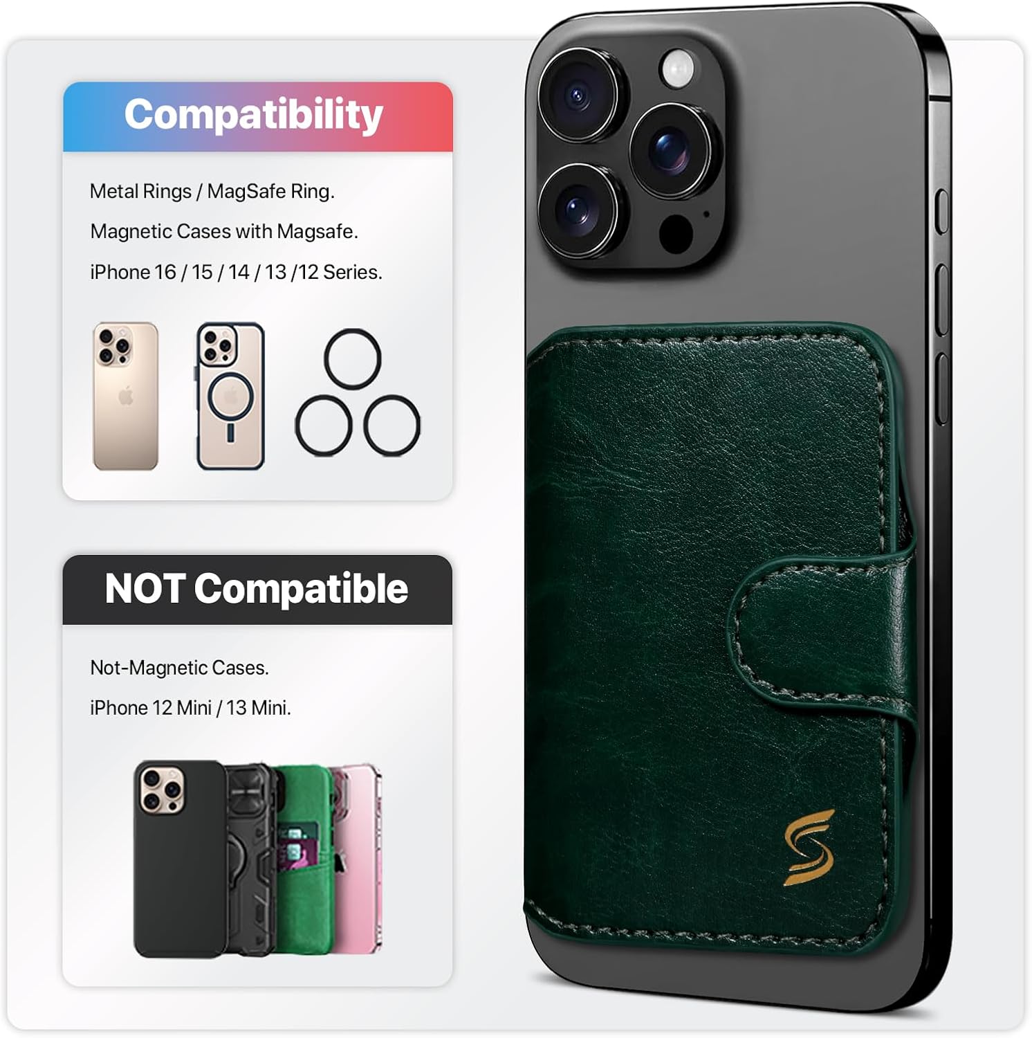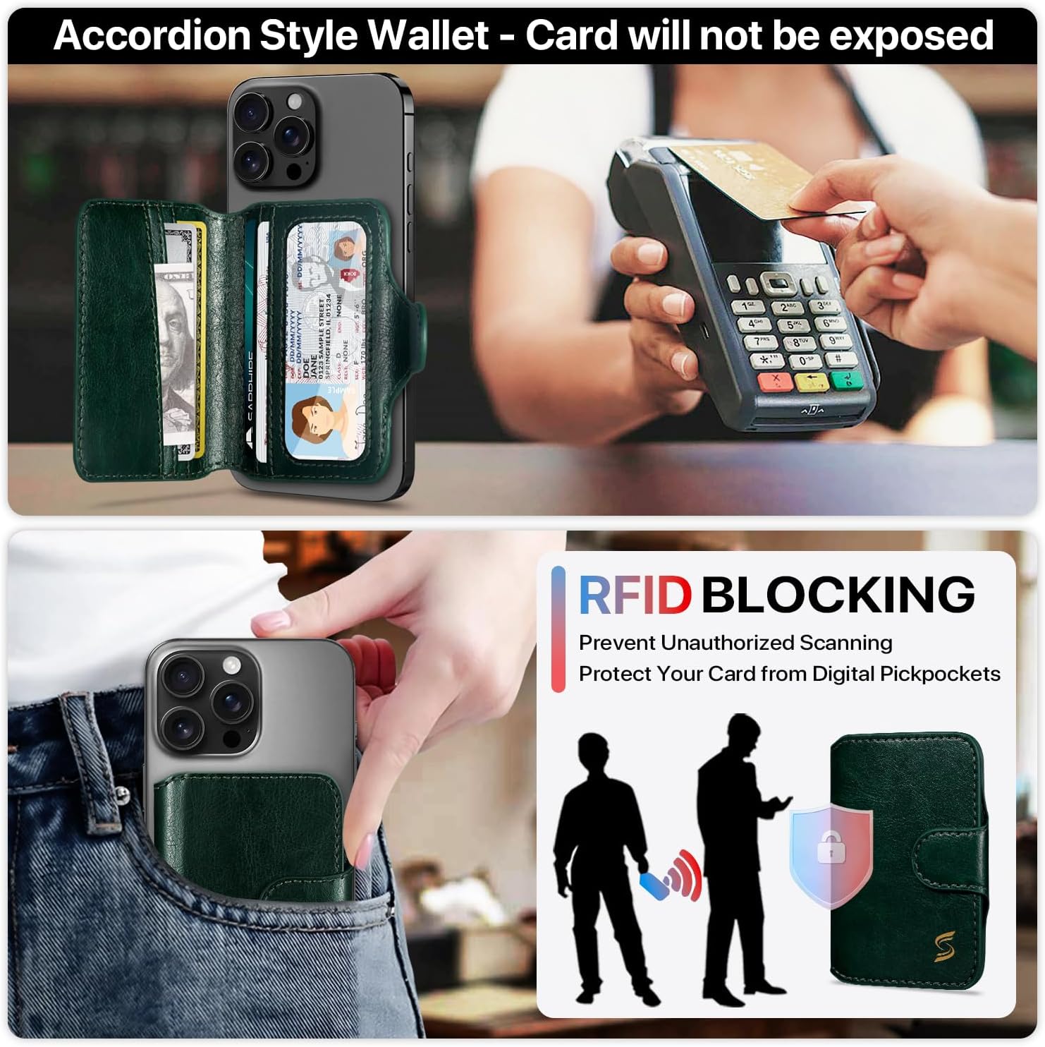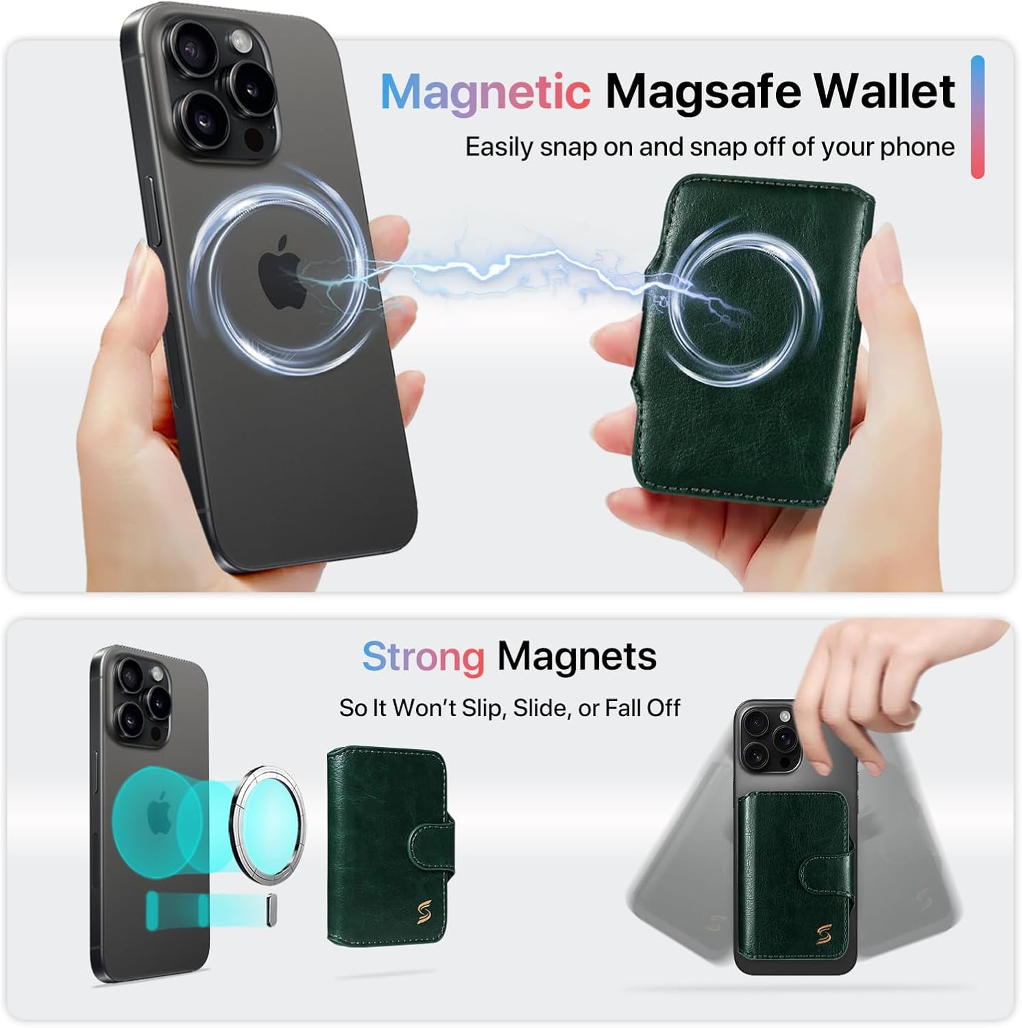 for MagSafe Wallet Magnetic Card Holder for iPhone 16/15/14/13/12, Pro/Max/Plus, RFID Blocking, 5 Slots Fit 7 Cards, 1 ID Window, Slim Luxury Leather Mag Safe Wallet for Women Men, Emerald Green