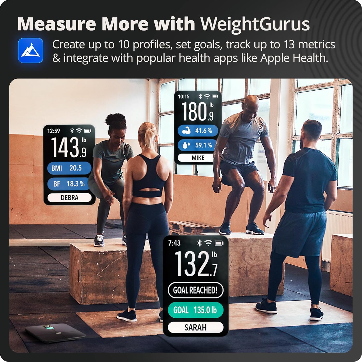 𝗗𝘂𝗮𝗹 𝗦𝘆𝗻𝗰 𝘄𝗶𝘁𝗵 𝗪𝗲𝗶𝗴𝗵𝘁𝗚𝘂𝗿𝘂𝘀 𝗔𝗽𝗽: Easily sync your data via Bluetooth and Wi-Fi with our Weight Gurus Smart Scale app for seamless tracking and progress insights on your phone