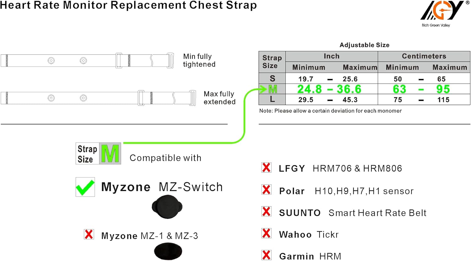 Heart Rate Monitor Replacement Chest Strap Compatible with Myzone MZ-Switch Chest Blet Multi-Packs