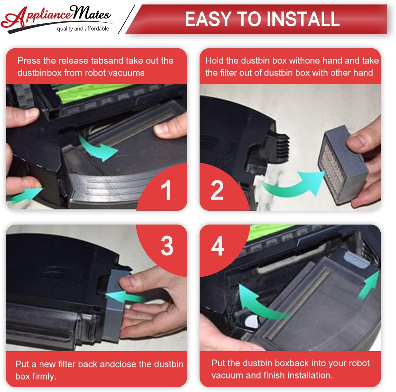 【AFTER-SALES SERVICE】 This i4 roomba filters offered by APPLIANCEMATES, designed to meet the original standard, which adopts durable polypropylene and HEPA quality material. 100 satisfaction guarantee. Any questions, you can contact us, we will try to give you a satisfactory solution