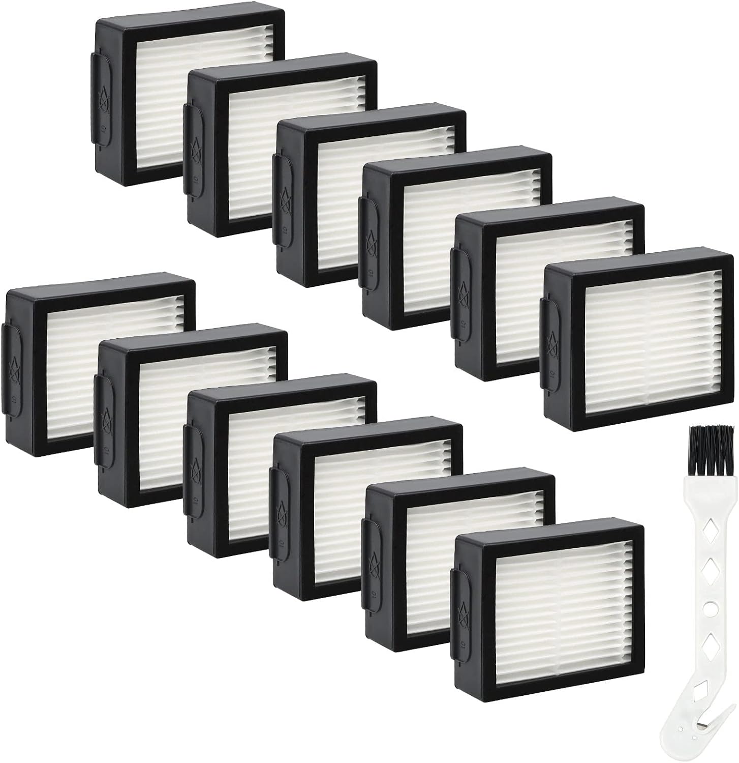 HEPA Filters Replacement for iRobot Roomba E I & J Series i7 i7+/plus i3 i3+ E5 E6 E7 i4 i4+ i5 i5+ i6 i6+ i8 i8+ Vacuum Cleaner, 12 Pack High Efficiency Filters + 1 Cleaning Brush