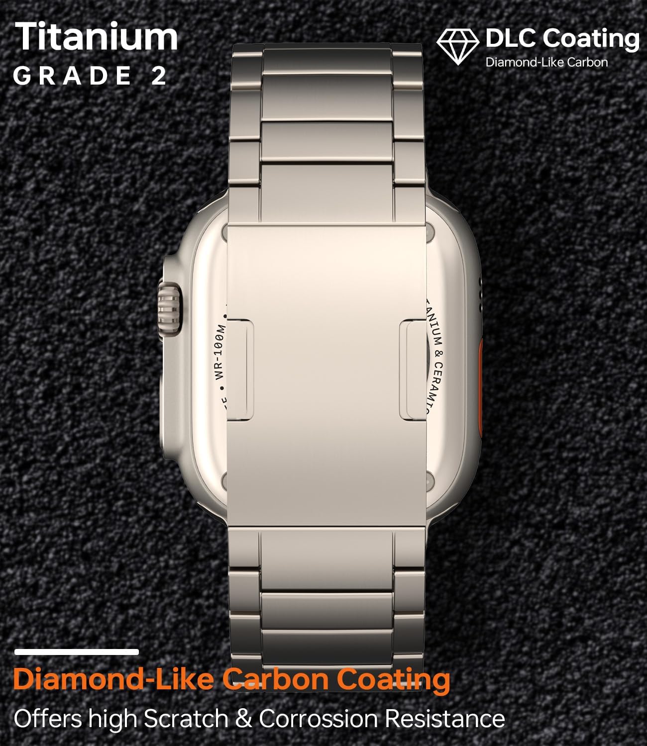 HONTECH Grade 2 Titanium Band Compatible with Apple Watch Ultra/Ultra 2 (49mm),Adjustable Titanium Apple Watch Band for Men,DLC Coating Scratch Resistant