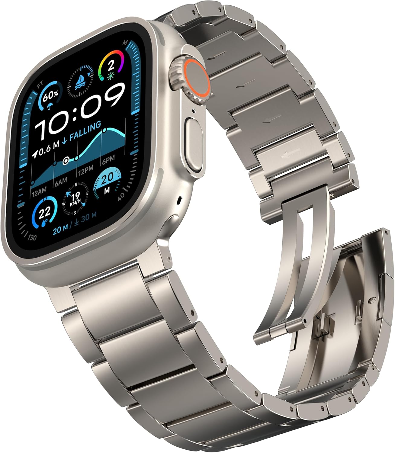 HONTECH Grade 2 Titanium Band Compatible with Apple Watch Ultra 49mm /Ultra 2 (49mm),Adjustable Titanium Apple Watch Band for Men-Magnetic Clasp-DLC Coating Scratch Resistant