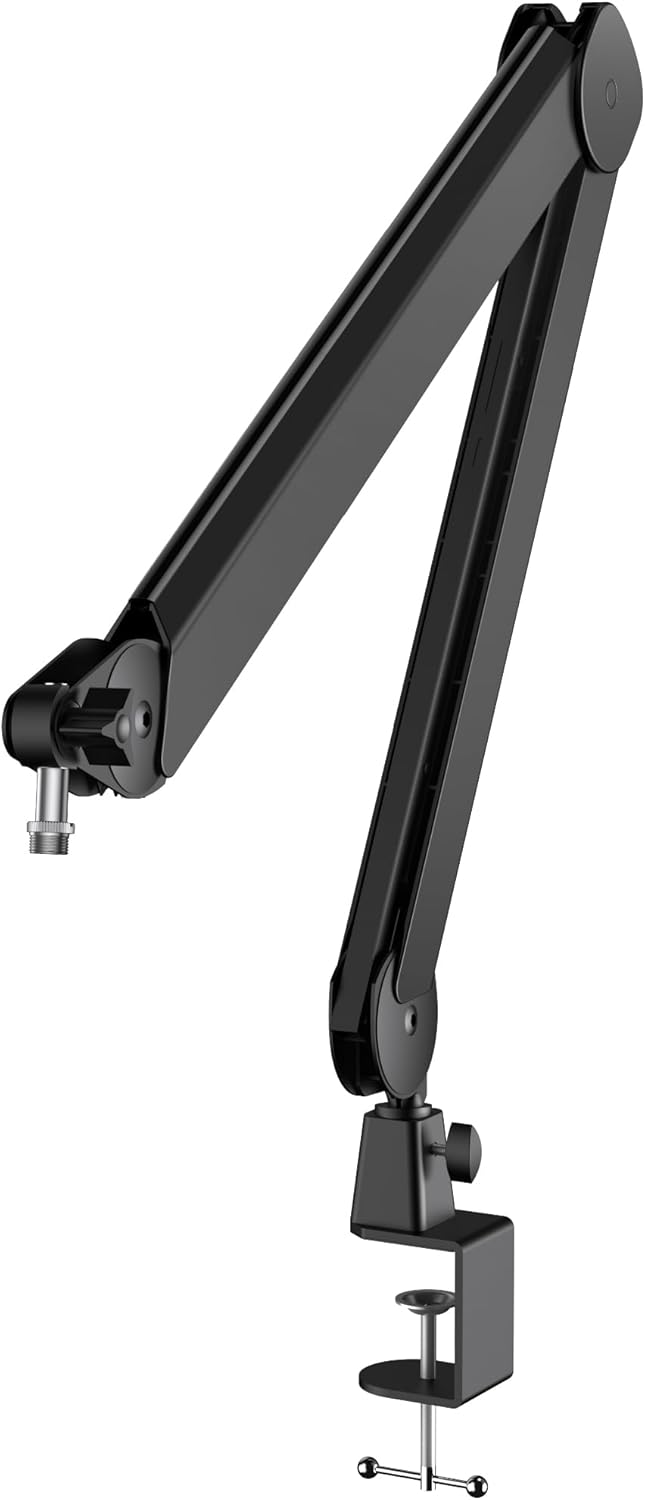 Precise Adjustability & Smooth Motion: Offering exceptional flexibility, the boom arm allows for 135° forward/backward and 180° vertical rotation, providing effortless adjustments in any direction. The 360° rotatable base ensures you can position your microphone at the ideal angle for the perfect sound, all with smooth, silent movement that won’t disrupt your performance.