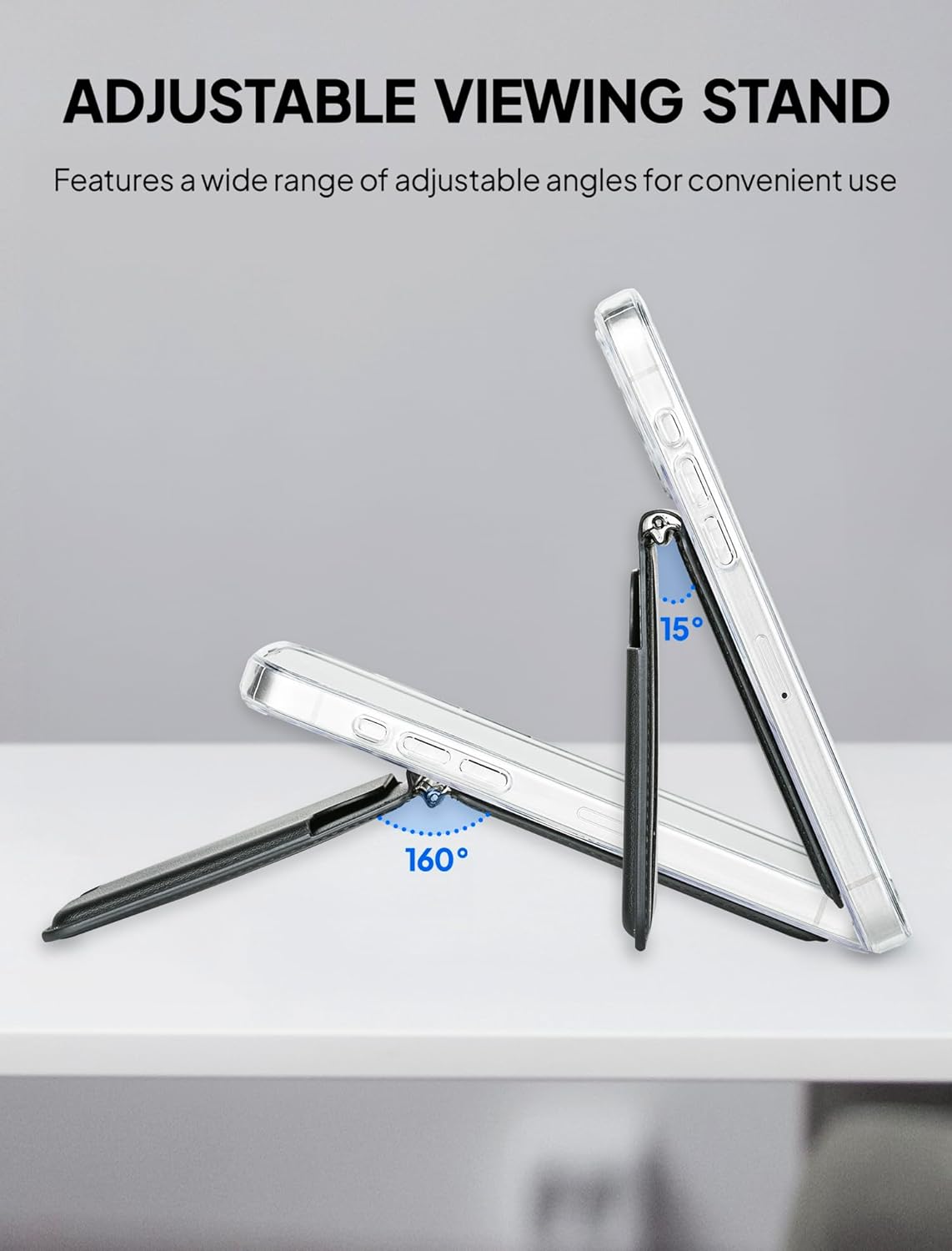 Dual-Mode Stand: This magnetic card holder for iPhone features an adjustable stand that supports both landscape and portrait modes?perfect for hands-free viewing, video calls, or reading.