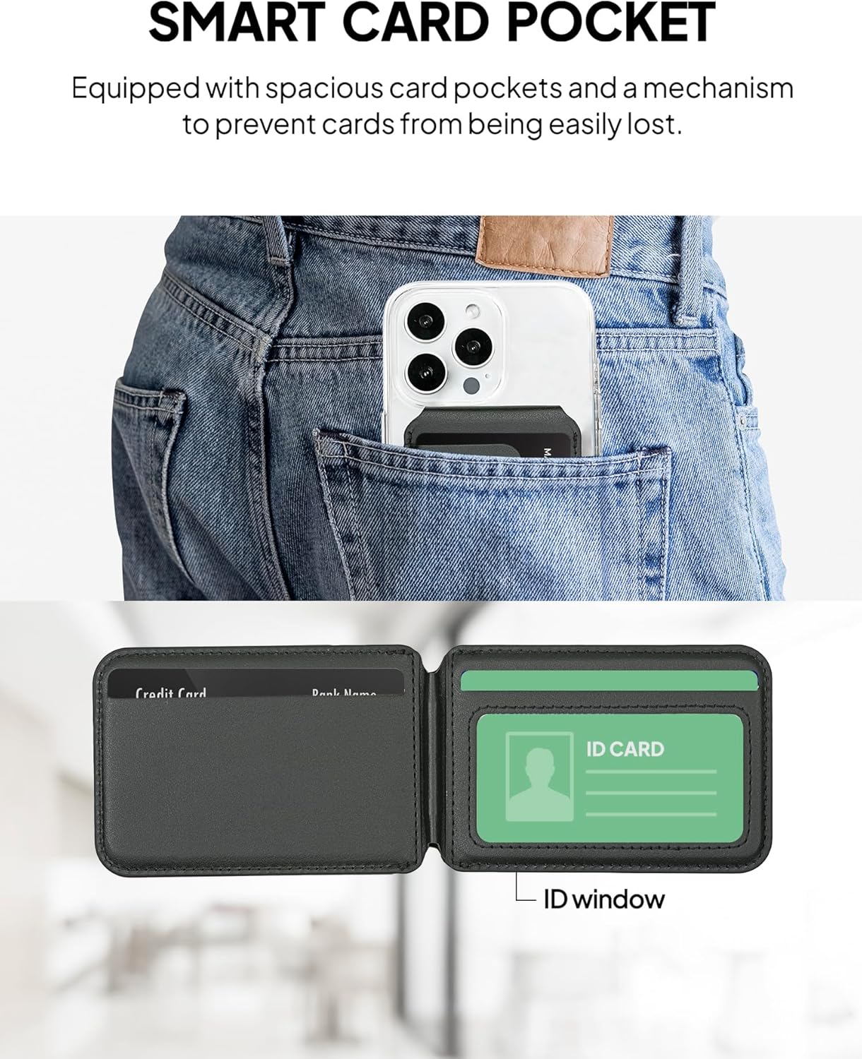 Strong Magnetic Hold: With a powerful 4000 Gauss magnet, this wallet stays firmly attached to your iPhone, even during daily movement or active use.
