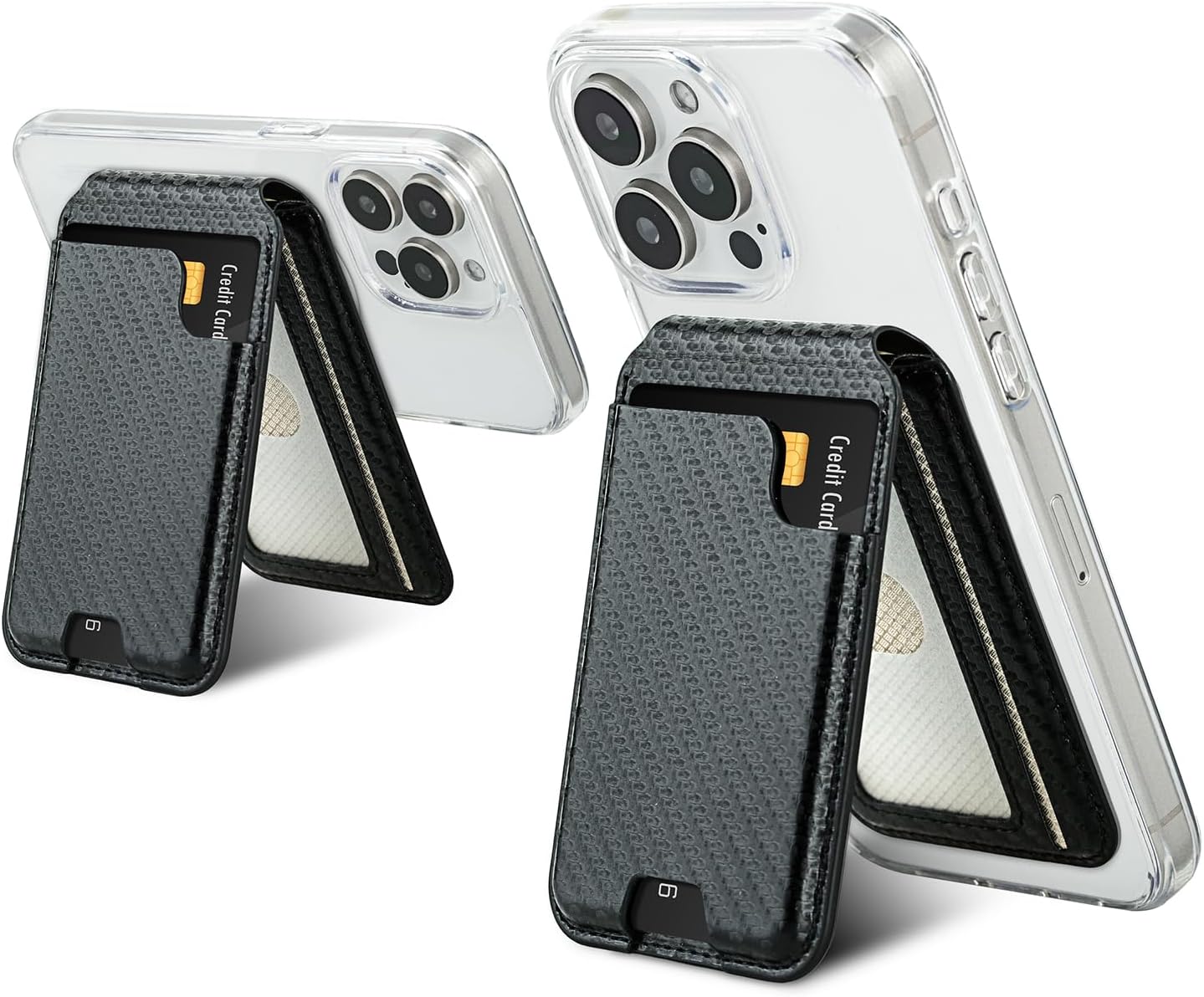 isee Magnetic Card Holder Wallet with MagSafe, Adjustable Stand for iPhone 16/15/14/13/12 Series Holds 5 Cards (Carbon)