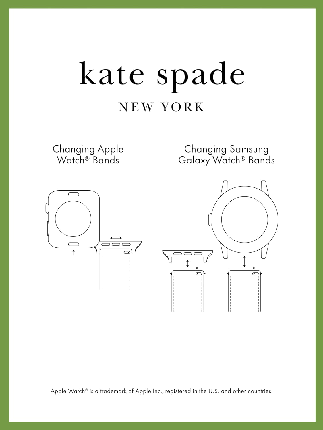 Each Kate Spade New York watch band for Apple Watch is designed with thought in every detail, from its color to its texture to its design. All our bands and bracelets are inspired by joy and feature unique touches, including playful graphics and eye-catching patterns—all in modern, feminine hues.
