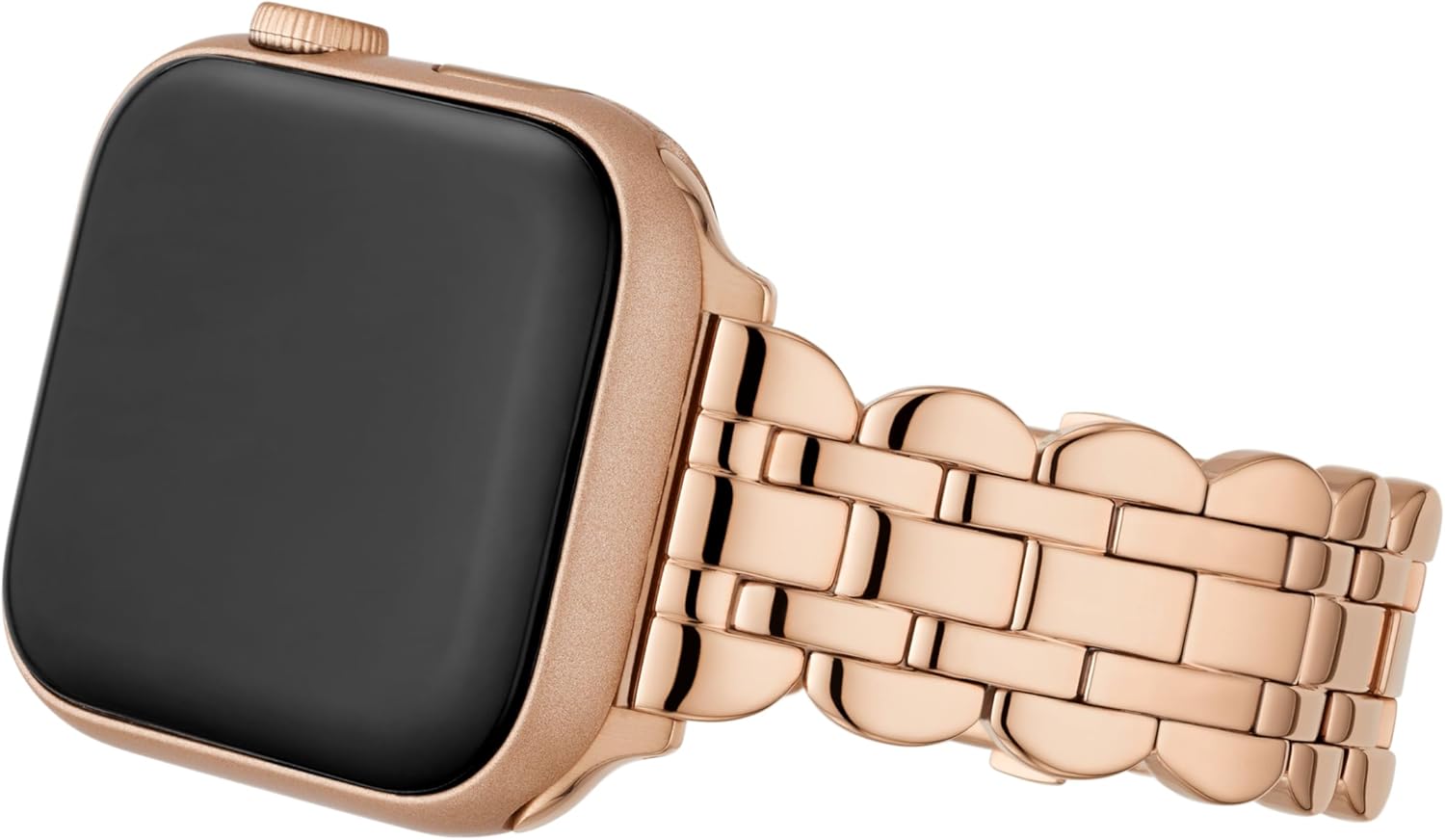 Bring a little polished elegance to your Apple Watch with this rose gold-tone stainless steel bracelet featuring stylishly scalloped edges and self-adjusting links to give you a custom fit.