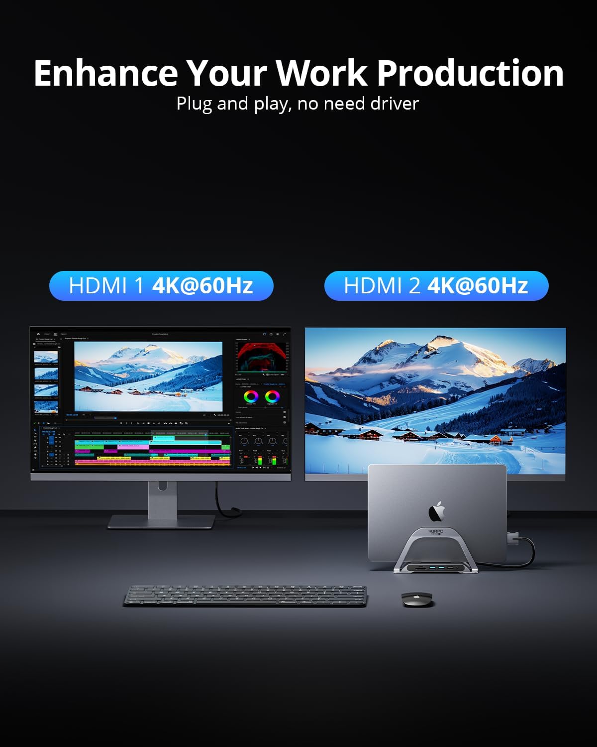 Dual 4K Displays:More Screen Space – Expand your MacBook’s potential with two HDMI ports supporting 4K@60Hz. Perfect for multitasking, gaming, or streaming without lag—because one screen is never enough