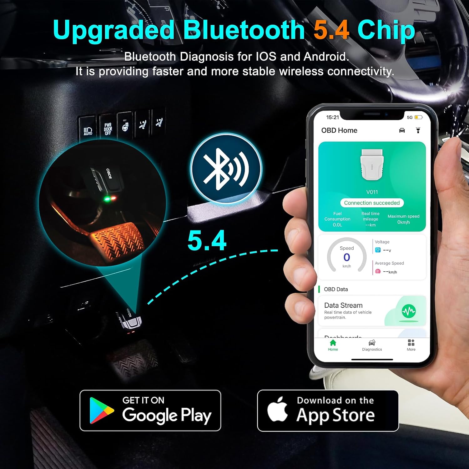 Auto-Connect & Easy to Use – This OBDII scanner connects via Bluetooth 5.4 for fast, and easy to pair seamlessly with both iOS and Android. Easy to install, just download the app to your phone, plug in the scanner to your car/truck’s port, and open the app. The included app is intuitive and user-friendly, no ads, no subscriptions, freeupdate for life.