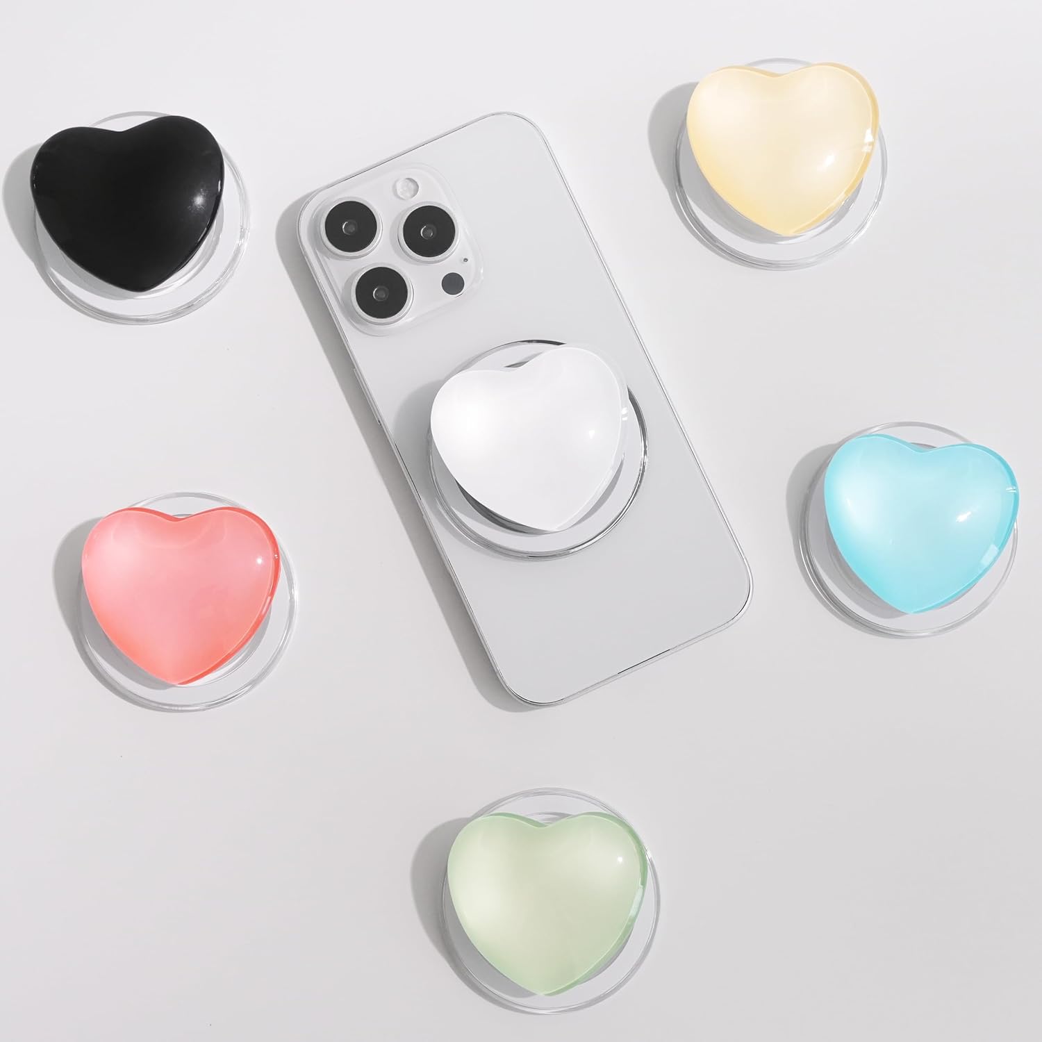 OnTheGrip Compatible with Magsafe Magnetic Cute Glass Heart Design Collapsible Mobile Phone Grip Stand Holder for Smartphone Tablet Cell Phone Accessory (White)