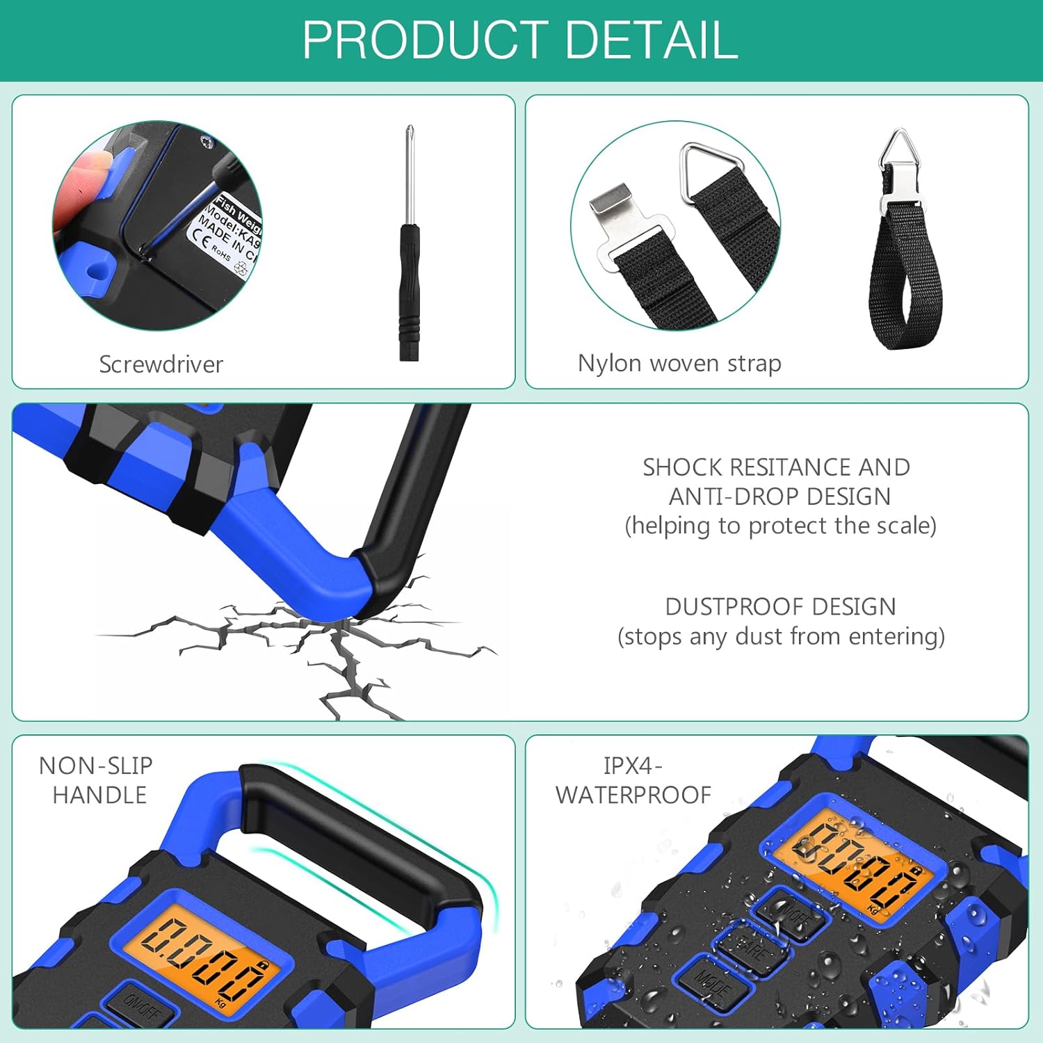 【Non-slip Handle】The waterproof fishing scale adopts a high-strength ABS material, which is not easy to damage. The sides and handle are coated with a non-slip process.