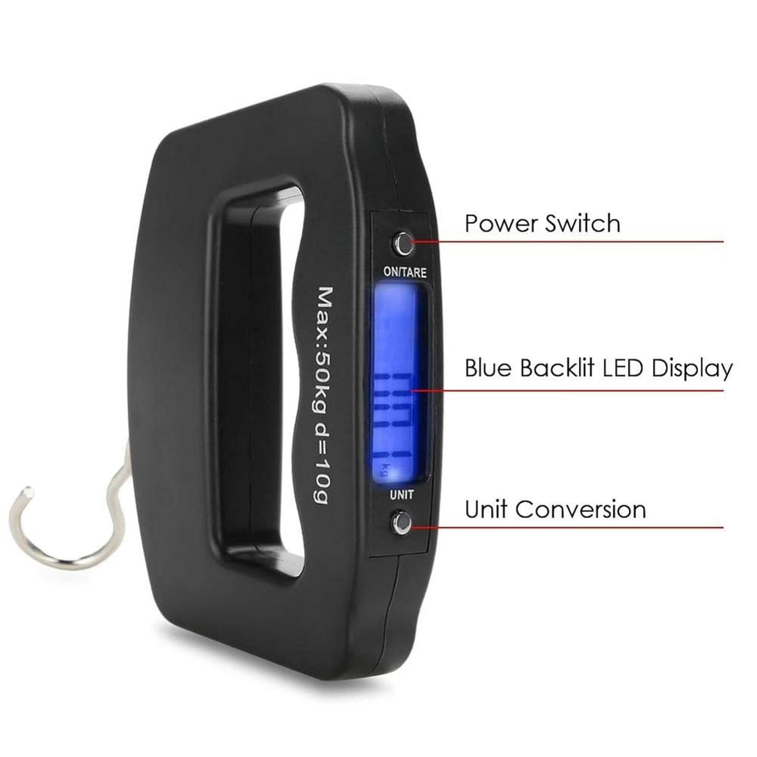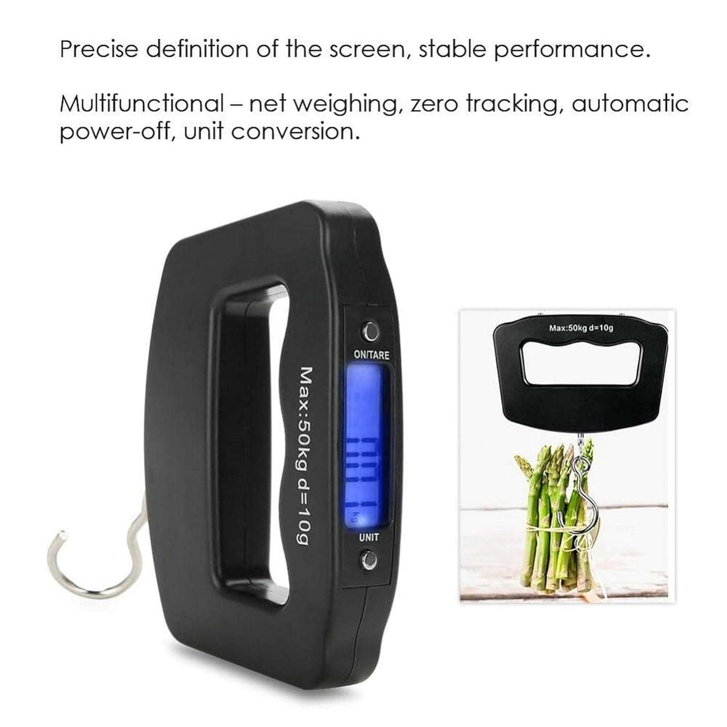 Easy to Weigh, Easy to Carry! 110Lb capacity digital luggage scale precisely weighs suitcases, bags and backpacks with accuracy within 0.1 pound. This simple, easy-to-use scale has a sturdy strap for an extremely accurate measurement of different types of bags. Weight results stay on the screen after stabilization so you can record results. Portable design makes it easy to store at home or take along in your suitcase. A Money Saving Tool for Travel,Never pay unexpected overweight baggage fees again. Why worry about your bags at check-in, being on-the-hook for extra fees and facing the embarrassment of repacking in public? Our Luggage Scale Resolve All of Your Trouble! The compact, lightweight design travels easily without adding significant weight or bulk to your flight or cruise. This scale is durable and heavy-duty to stand the test of time and perfect for the frequent traveler. Ergonomic Pressure Dispersing Design With blue backlit, you can simply lift the luggage up right and look down to read the accurate value,which takes you less strength. And the scale is wide enough to grip with all the fingers to disperse the pressure, bringing a comfortable gripping experience. Features: Material: ABS plastic Conversion units: pounds, ounces, grams, kilograms (easy to convert for international travel) Hook scale with tare function Minimum weight: 0.02Lb/0.01KG Maximum weight: 110Lb/50Kg Product size: 4.7×3.1×1 inches/120x0x25mm Product weight: 0.24Lb/3.84OZ/0.11KG Packaging size: 5.7×5.7×1.3 inches/145x145x34mm Packaging weight: 0.33Lb/5.29OZ/0.15KG Color: Black Powered by 2 * AAA (1.5V) battery (included) Packaging includes: 1 * Digital scale 1 * User manual 1 * Luggage strap