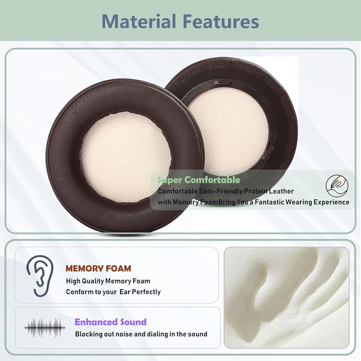 🎧Super Comfortable Ear Pads Cushion:made of soft protein leather and high quality memory foam in our professional factory.