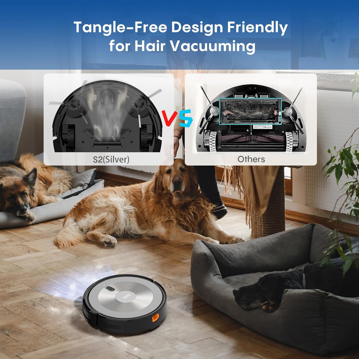 ✅【2500Pa Strong Suction & Carpet Boost】With 2500Pa of powerful suction, the S2 robot vacuum cleaner ensures deep cleaning performance, especially effective in removing pet hair from carpets and hard floors. The automatic vacuum robot intelligently boosts suction when it detects carpets.