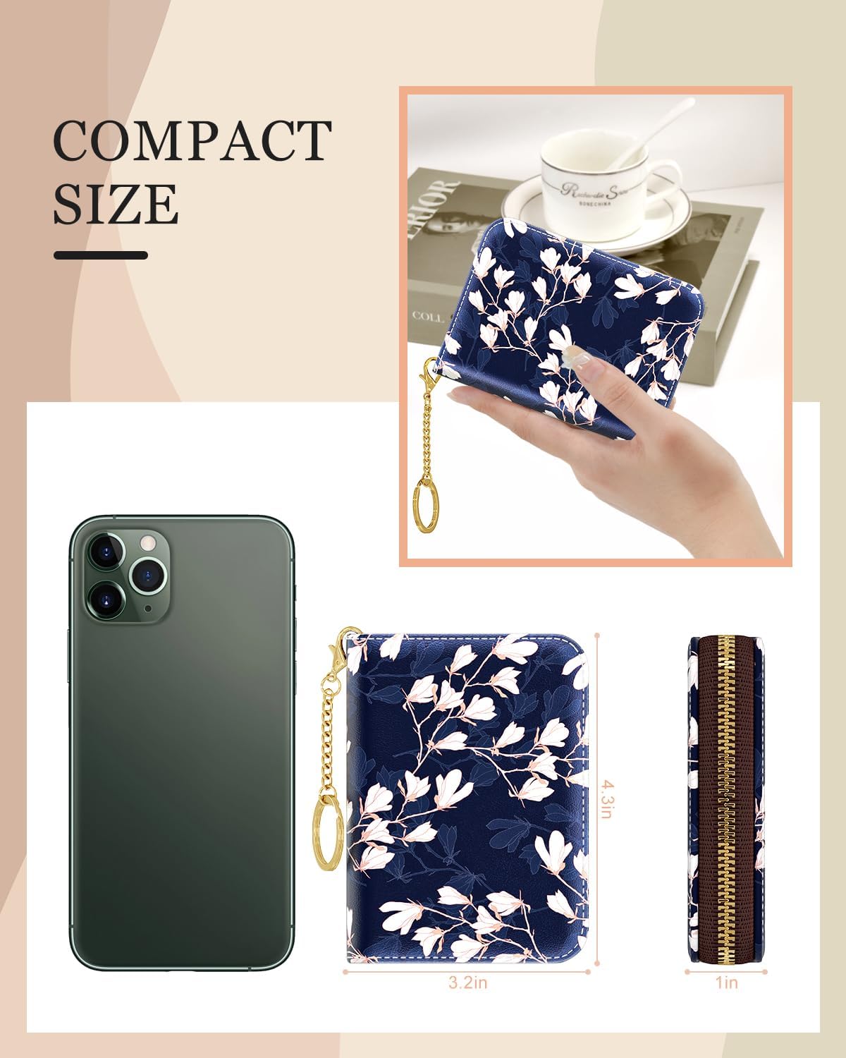 Long Lasting Material: This credit card wallet are made of soft PU leather, smooth, anti fray, comfortable to the touch. Individual hand stitching to ensure women wallet’s longevity. The zipper designs make it stays closed and flat when stuffed