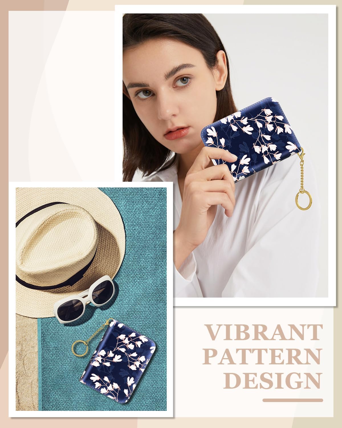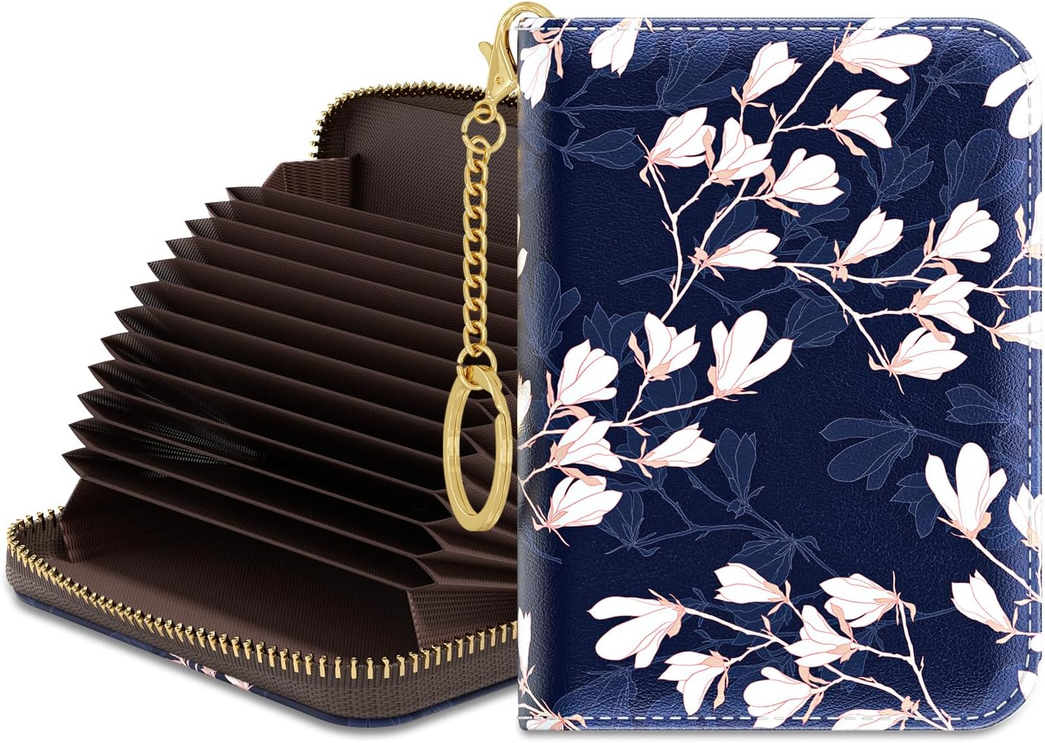 Rouidr Credit Card Holder for Women, Small Slim RFID Card Organizer Wallet with Zipper and Keychain, Abstract Flowers