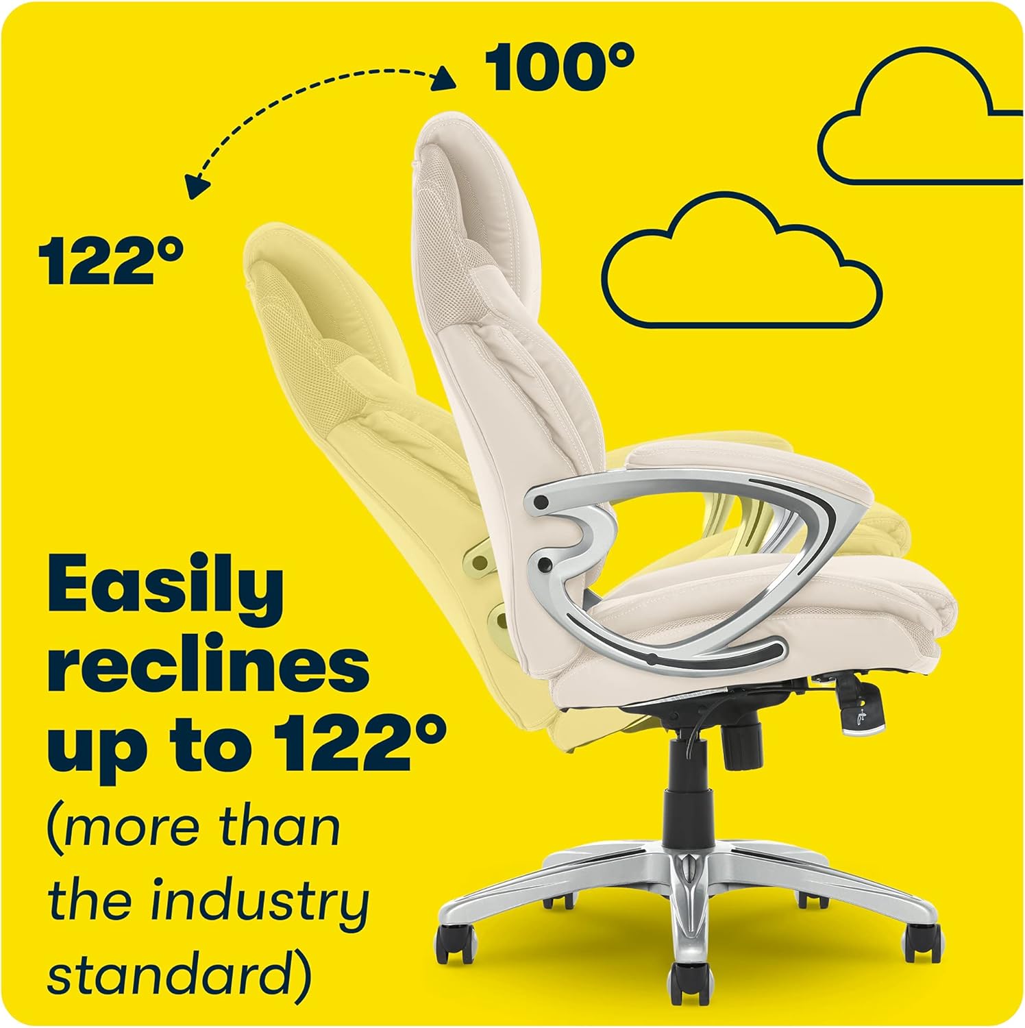 Serta AIR Health and Wellness Executive Office Chair, High Back Big and Tall Ergonomic for Lumber Support Task Swivel, Bonded Leather, Comfortable Cream