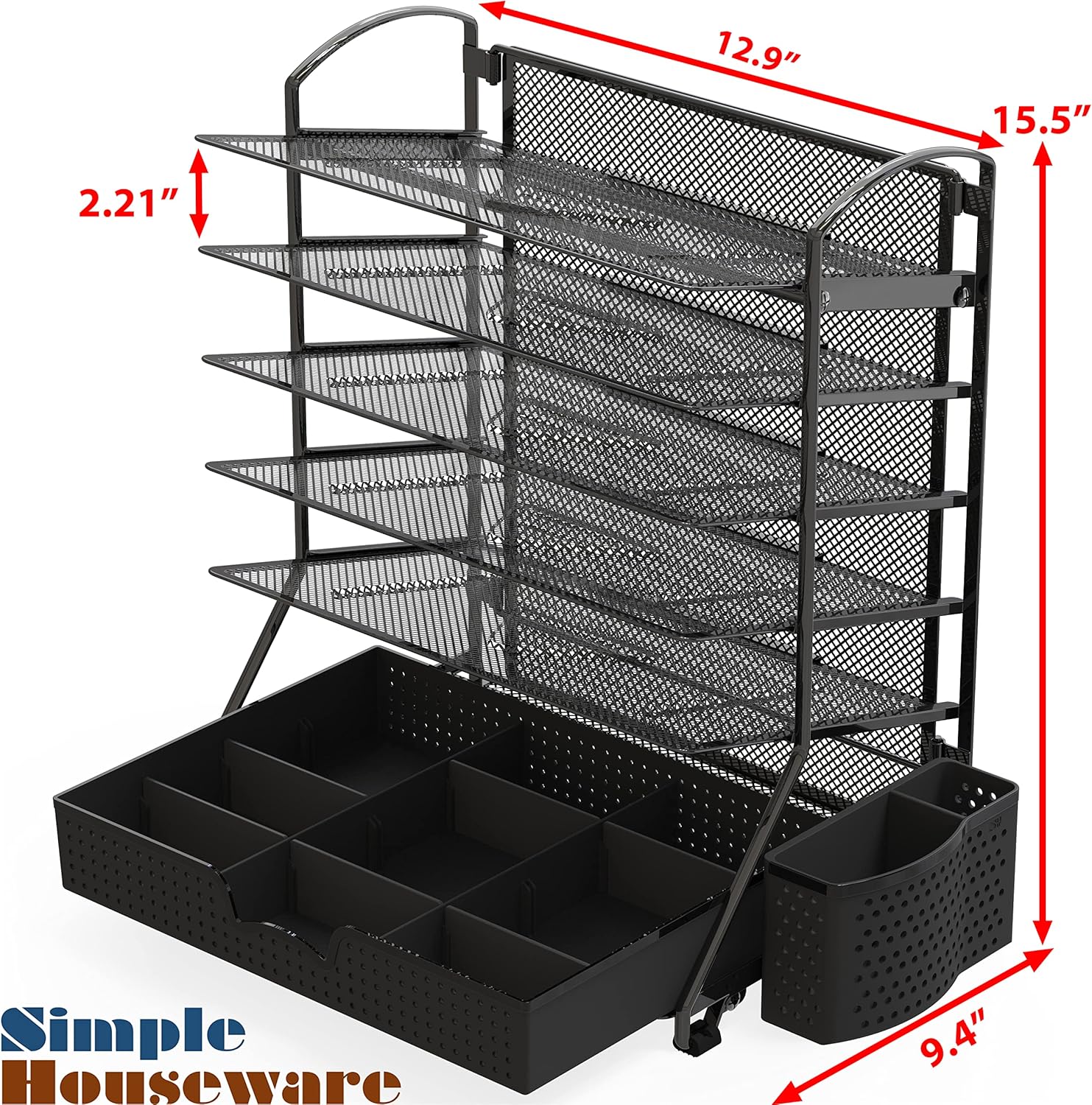 SimpleHouseware 6 Trays Desk Document File Tray Organizer with Supplies Sliding Drawer, Black is the perfect solution for organizing your documents, and the storage drawer provides space for stationery and desk accessories.