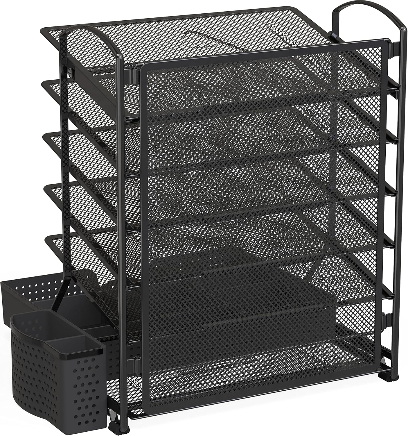 Five sturdy steel trays provide plenty of storage for Letter/A4 size papers, folders, binders, drawings, mails, bills, reports. The large capacity will free your valuable office desktop space!Tilted sliding design helps to reach files easily. If preferred, one or more trays can be removed to create more space for larger items such as file folders.