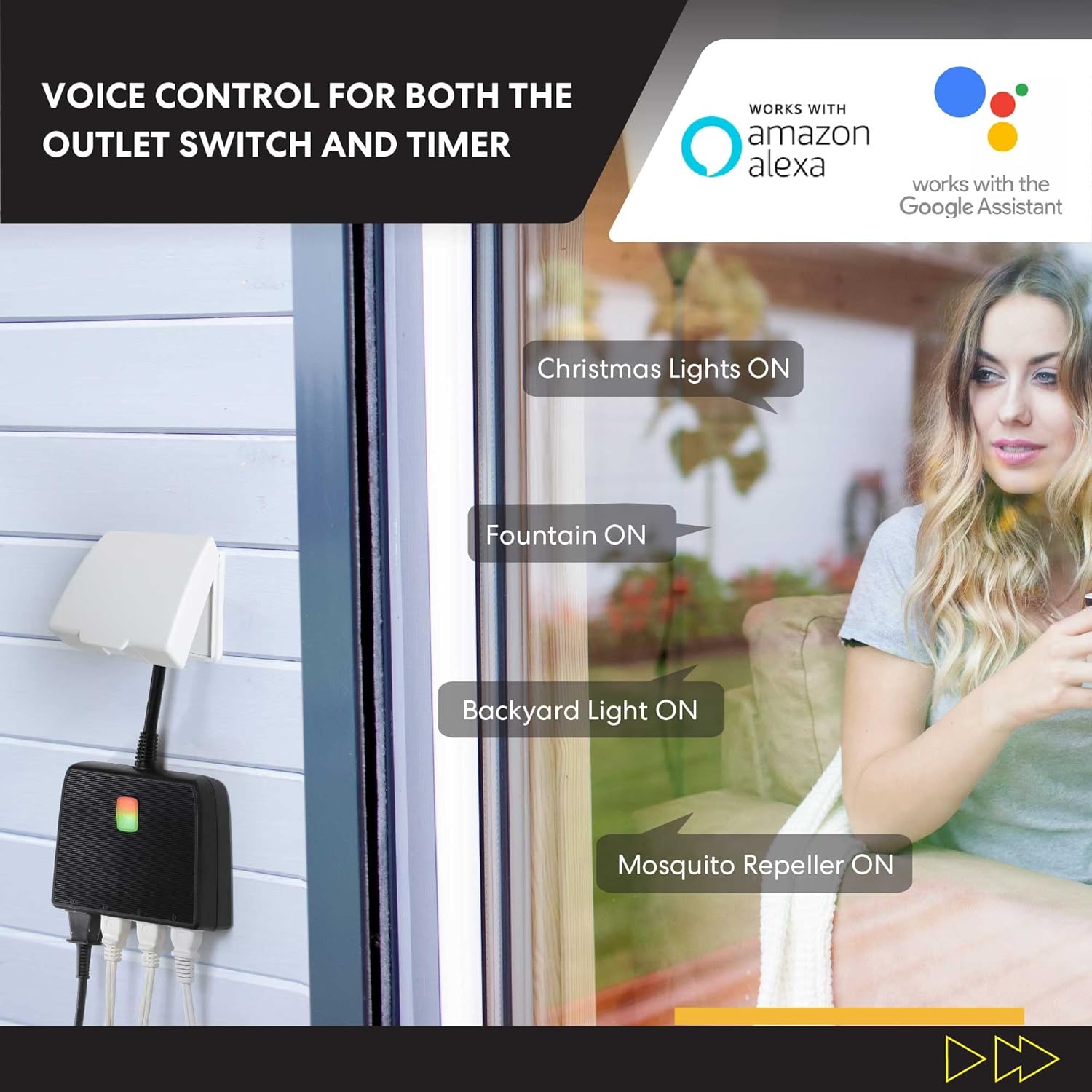 LONG RANGE WiFi CAPABILITIES: Use the included Smart Life app to control your smart plug from anywhere in your home or anywhere conveniently. It makes decorating for the holidays a breeze since you can control your Halloween light decorations, Christmas lights, birthday decorations, or any other holiday decor from the comfort of your living room! It also works great for controlling fountains, garden lights, pond pumps, pool pumps, sprinkler systems, lawnmowers, and much more.