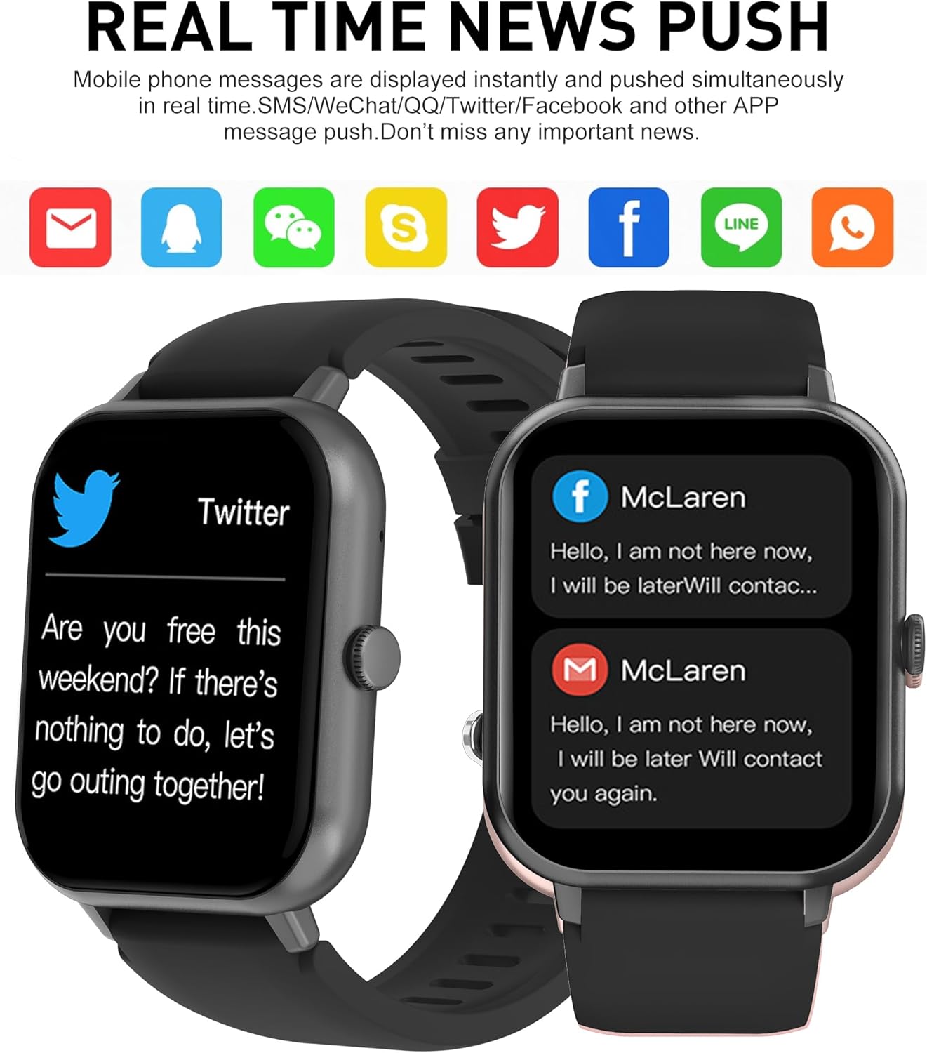 ⌚【IP68 Waterproof & 110+Sports Modes】- This women’s watch has IP68 waterproof, you don’t have to worry about the watch’s normal use, even while swimming, washing your hands, or exercising in the rain. Built-in 110+ kinds of regular motion modes. It can also provide data on 8 types of exercise, according to different exercise modes, the data such as steps, exercise time, GPS exercise track(smartwatch APP View), calories, exercise heart rate tracking, mileage and so on are displayed respectively.
