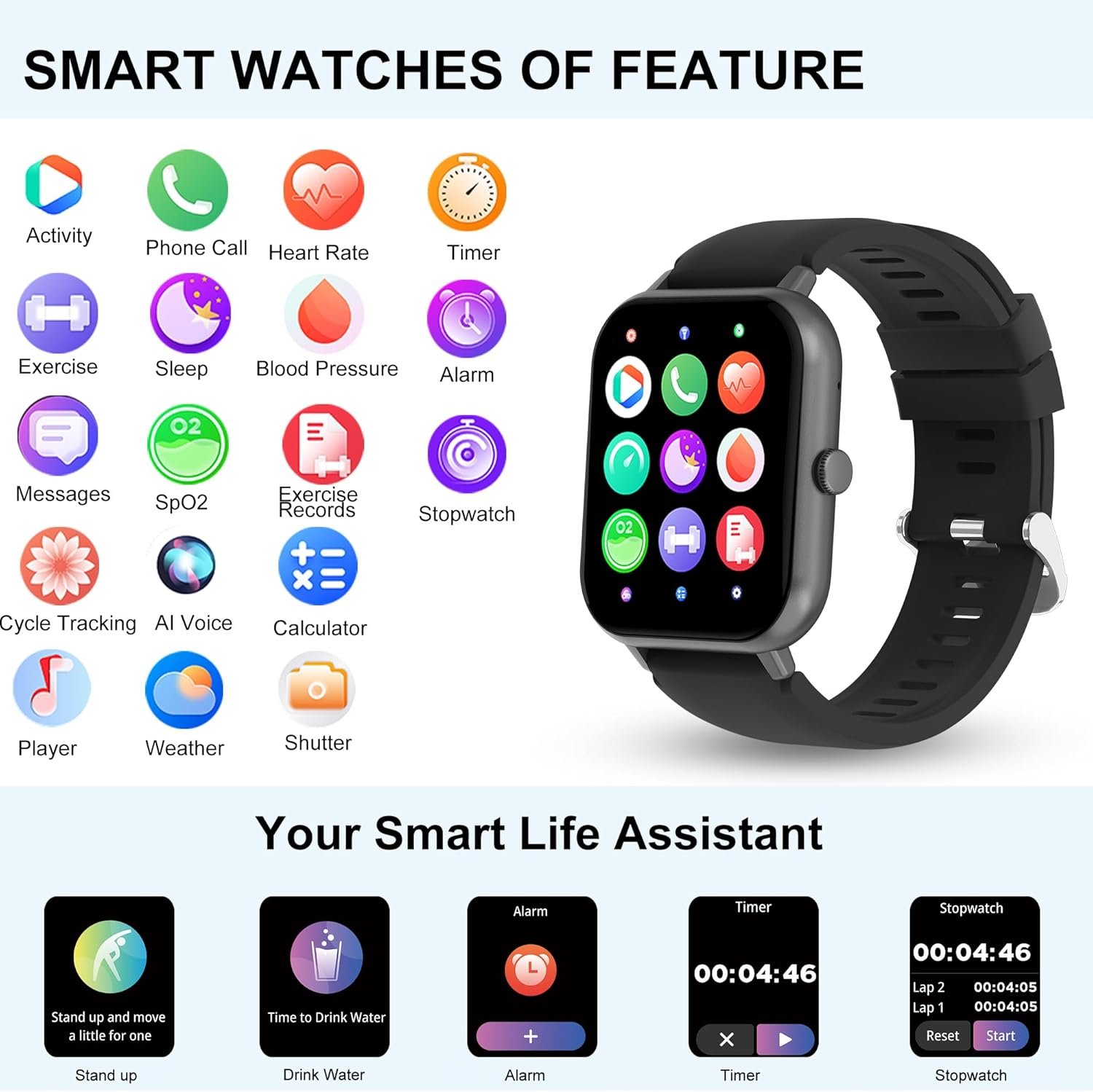 ⌚【Enjoy the Convenience of Voice Assistants】- Enjoy the convenience that voice assistant gives you, so you can make calls, play music, set alarms, ask about the weather and so on through voice assistant while you are driving or exercising, smart watch for women voice assistant brings more convenience to your life. Make your life more wonderful!