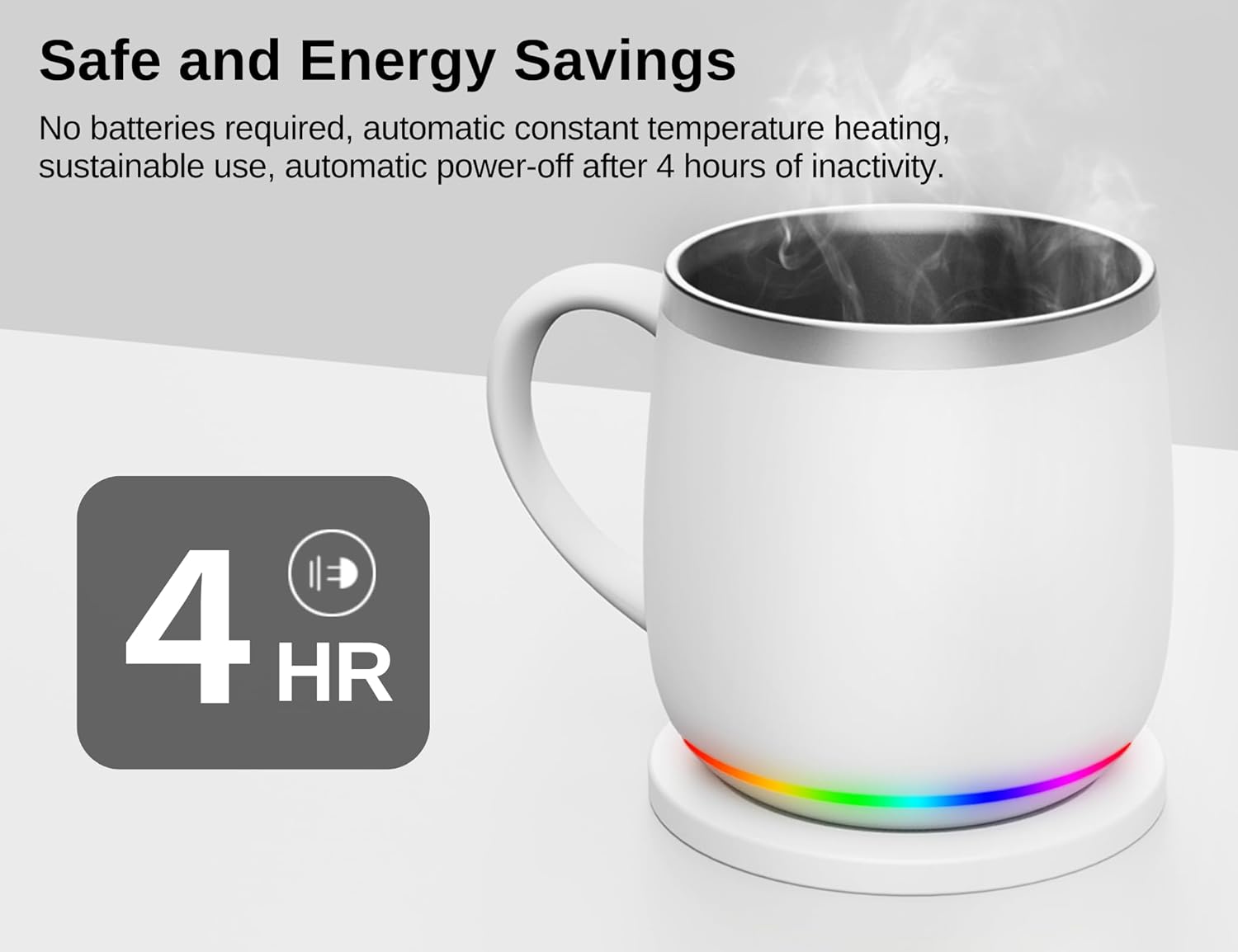 【Automatic shutdown for safety】 The smart sensor will detect and automatically shut down if the mug has not been used for 4 hours. Make sure that the heated coffee mug is safe during long periods of non-use.