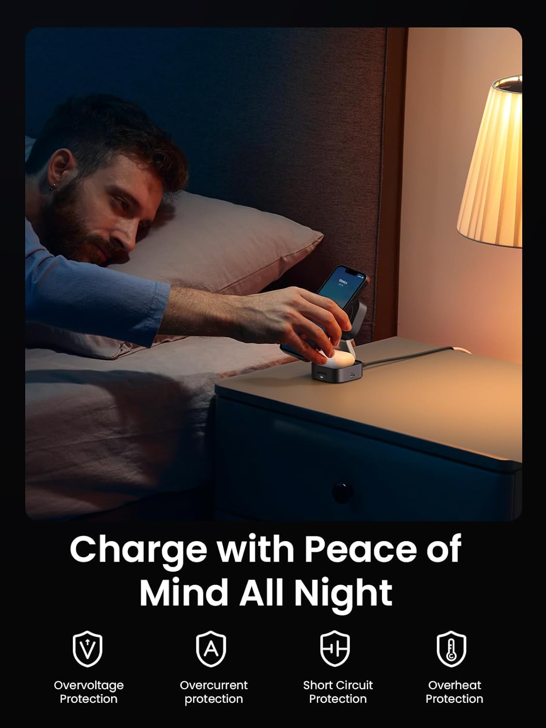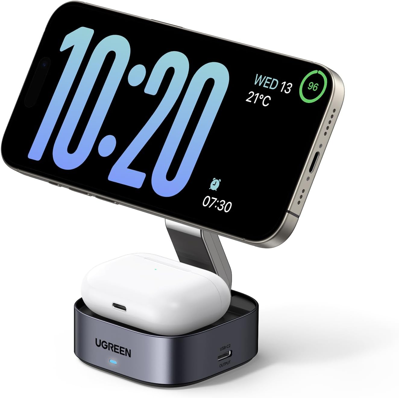 Multi-device Fast Charging: Ugreen magnetic wireless charger simultaneously powers up your iPhone and AirPods, with an additional 5W USB-C output for extra convenience