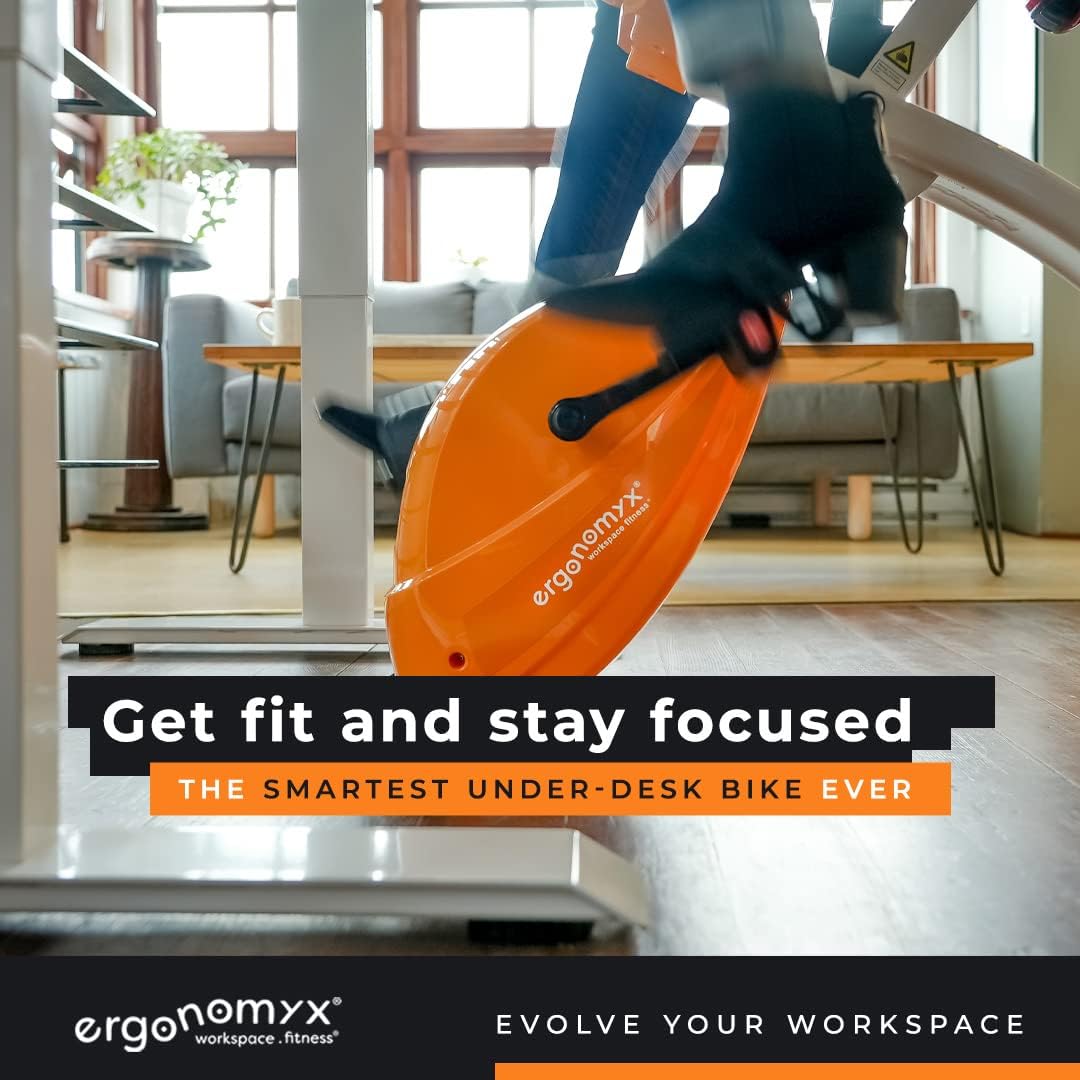 Looking for focus, energy, and fitness? Use the Ergonomyx under-desk bike to get an at-home workout or burn calories with light exercise throughout your day.