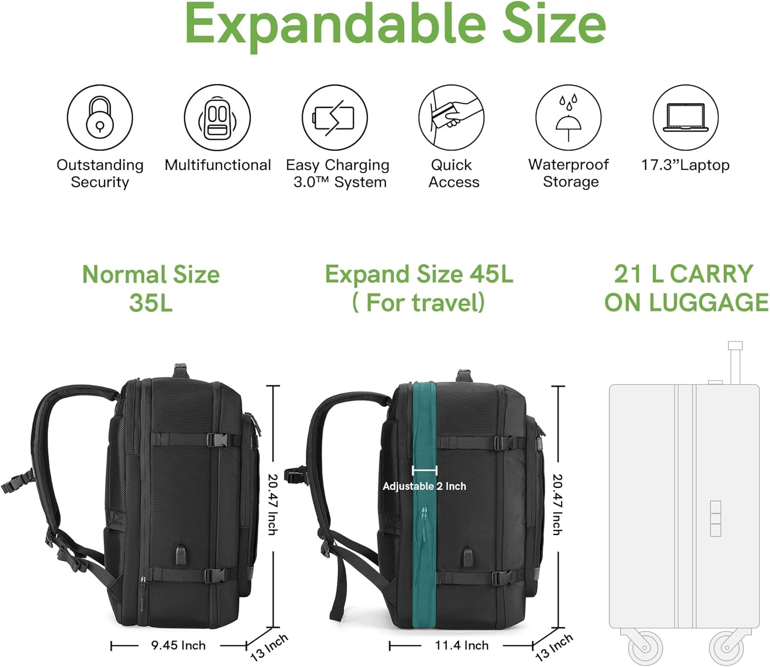 35-45L Expandable Large Travel Backpack