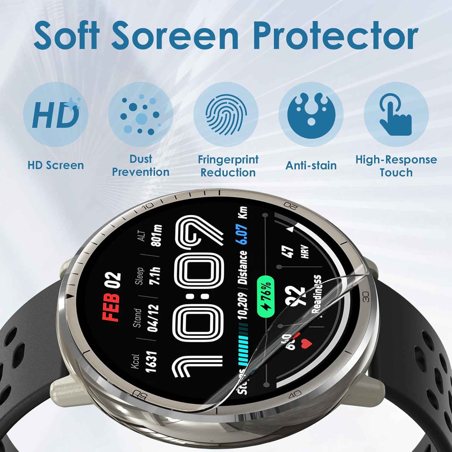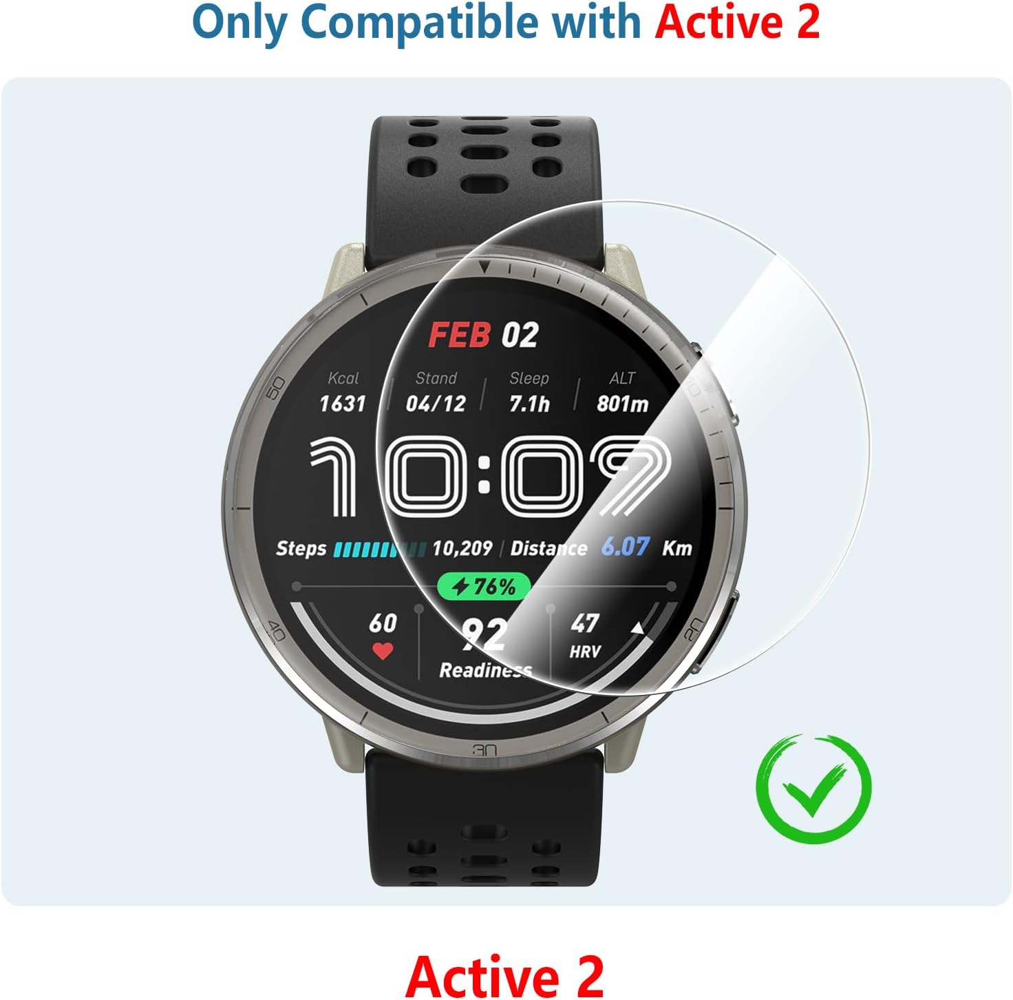 Perfect Fit for Amazfit Active 2 (44mm) – Precision-cut to match the 1.39-inch curved display, providing full coverage without blocking touch sensitivity or visibility.